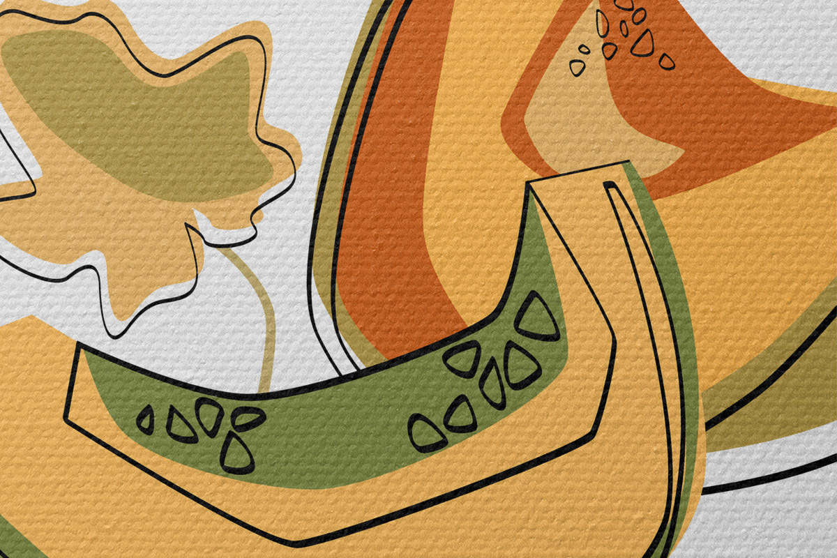 Tableaux rondes Dessin linéaire d'un melon, abstraction r41466