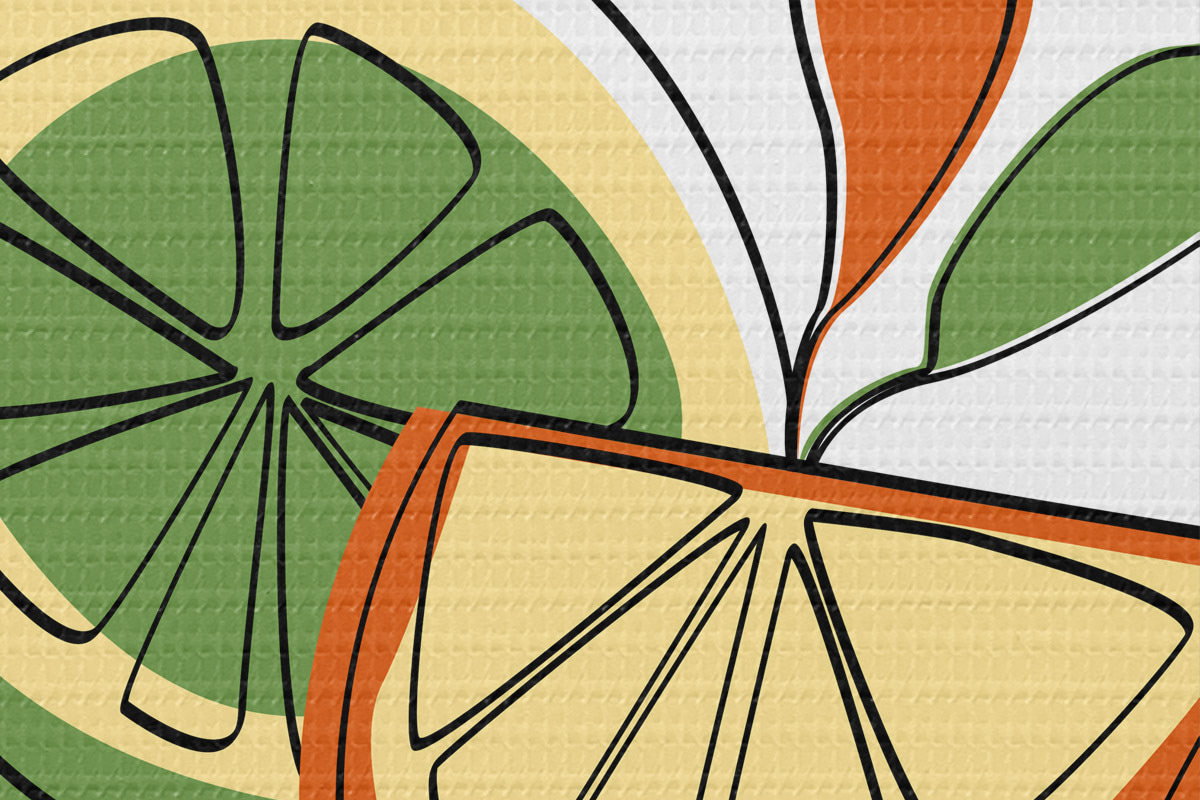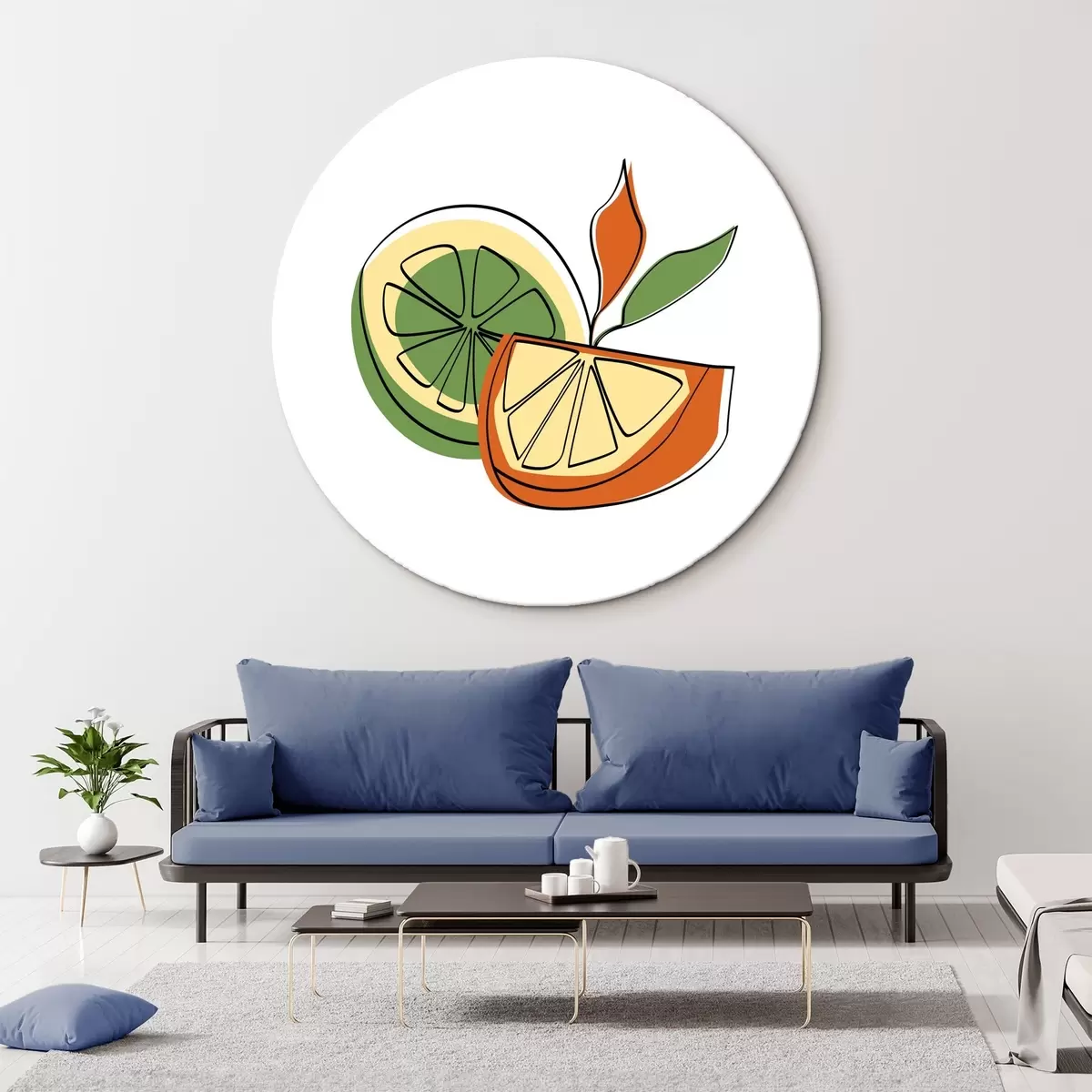 Tableaux rondes Agrumes dessin linéaire, abstraction r41468