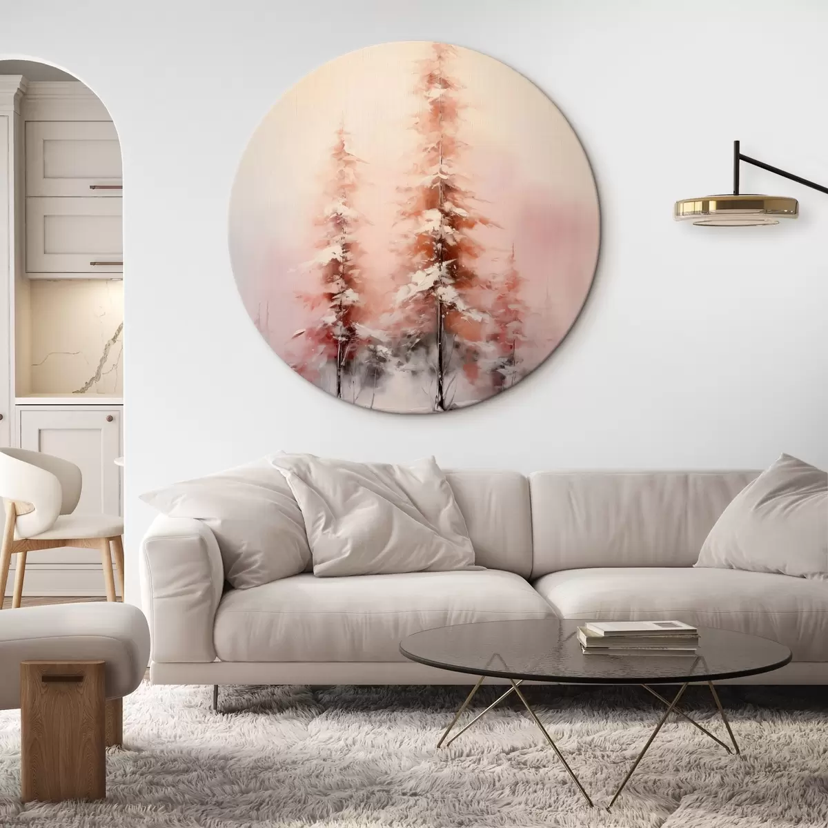 Tableaux rondes Sapins d'hiver à l'aube dans le brouillard Nr r41470