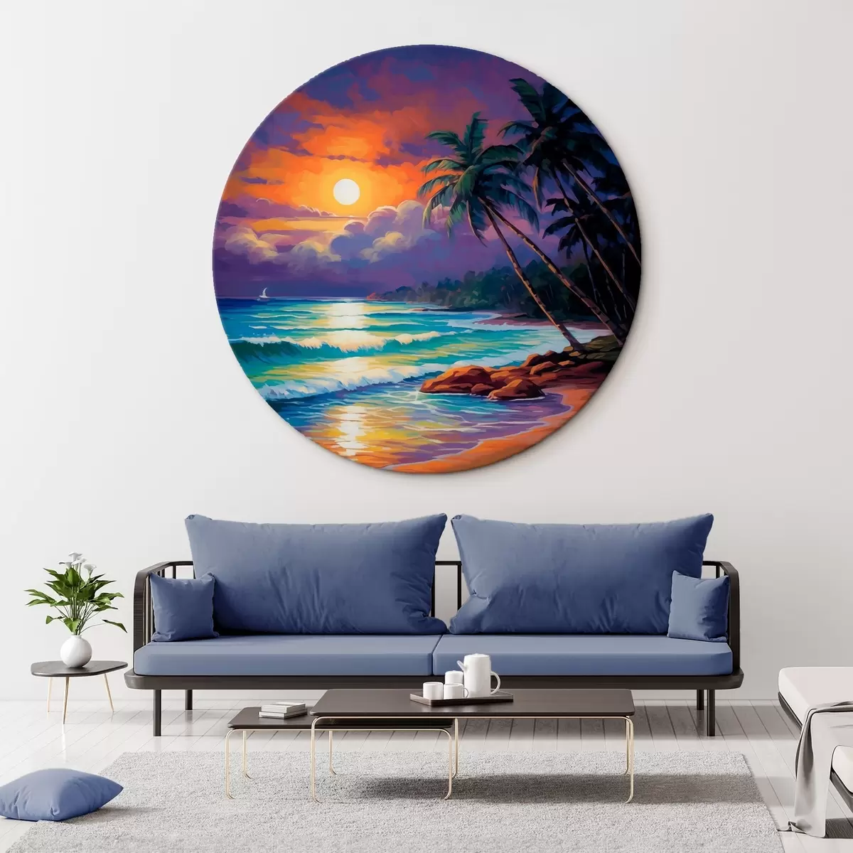 Tableaux rondes Coucher de soleil tropical Nr r41484