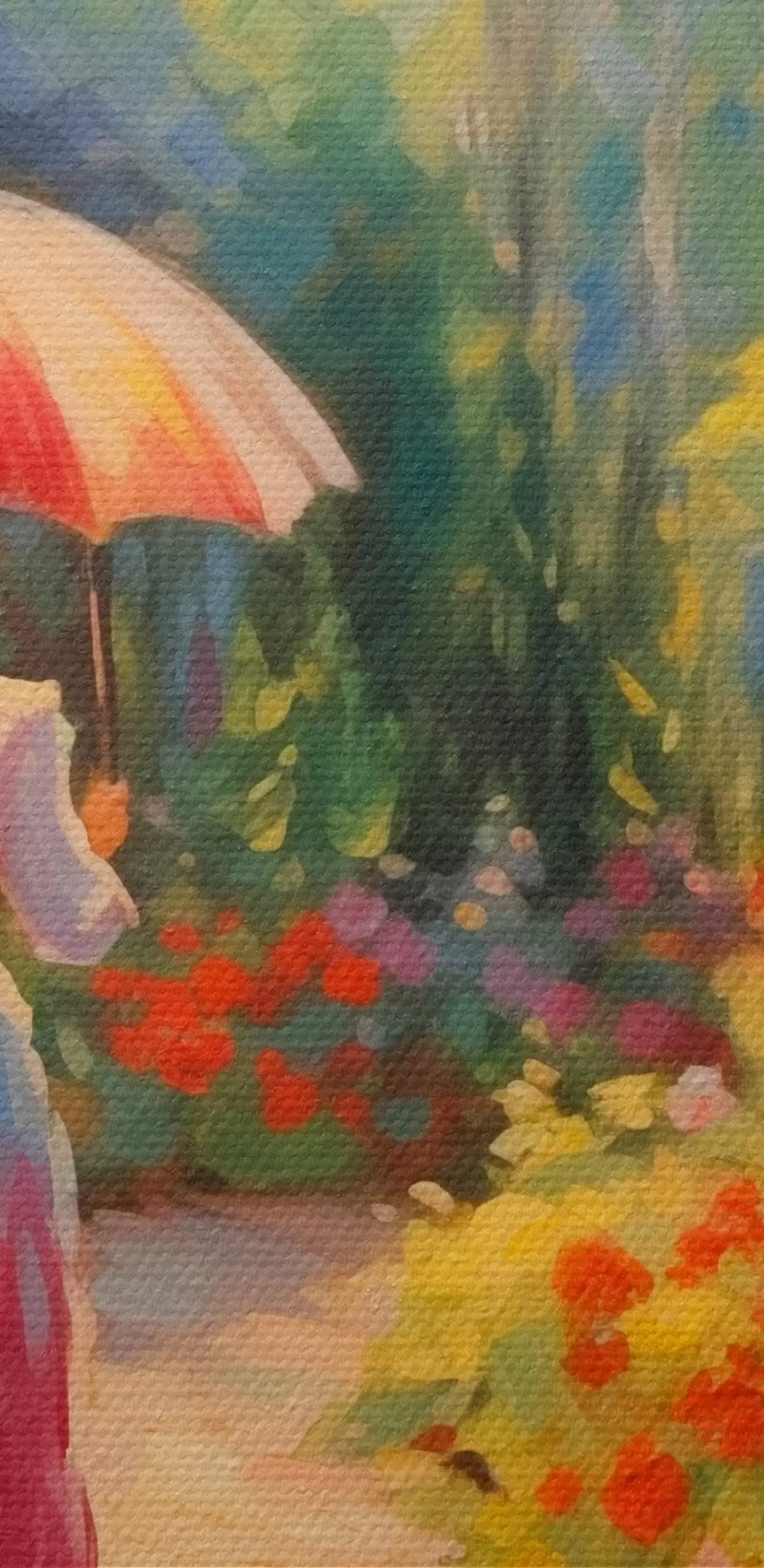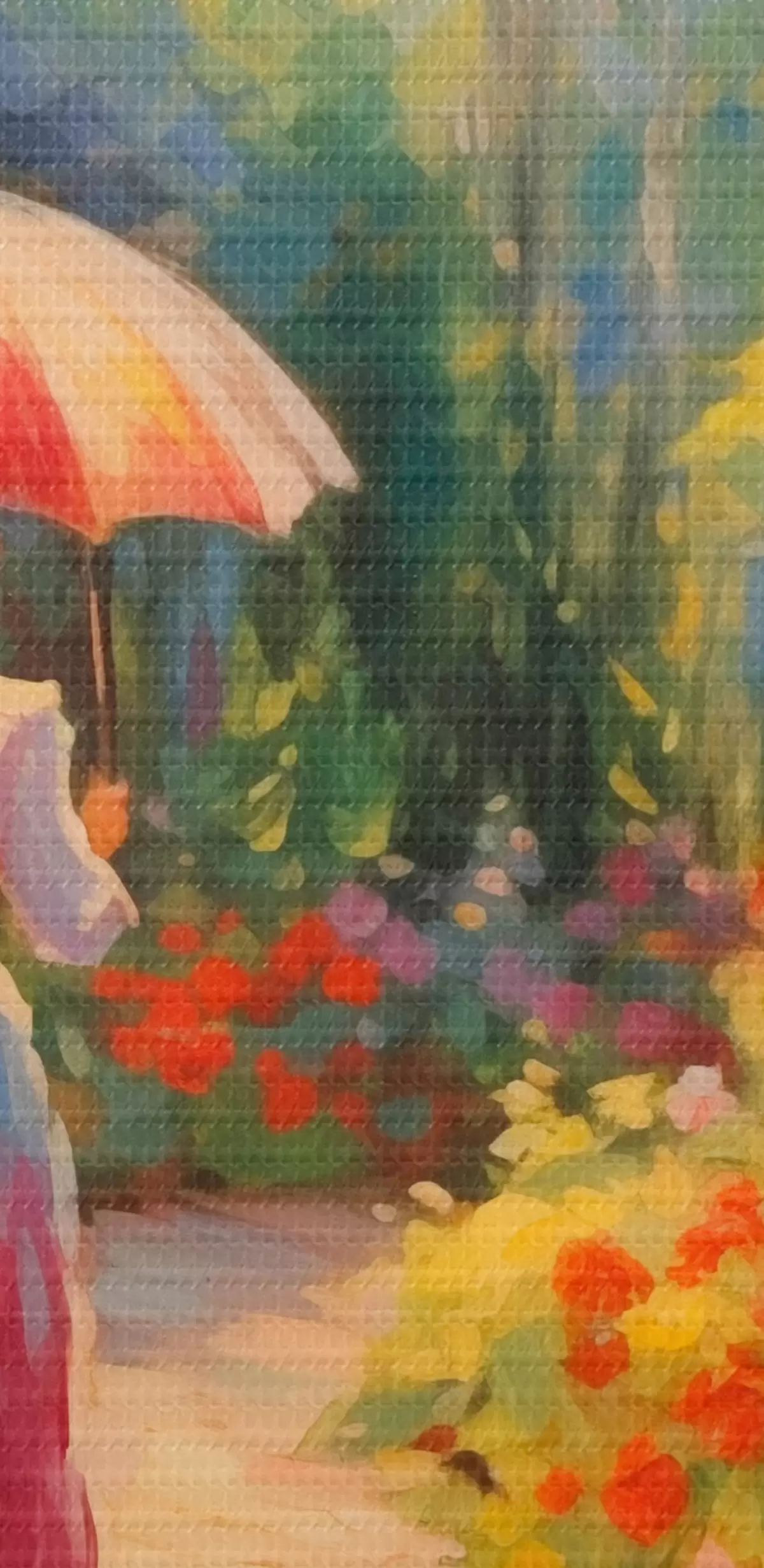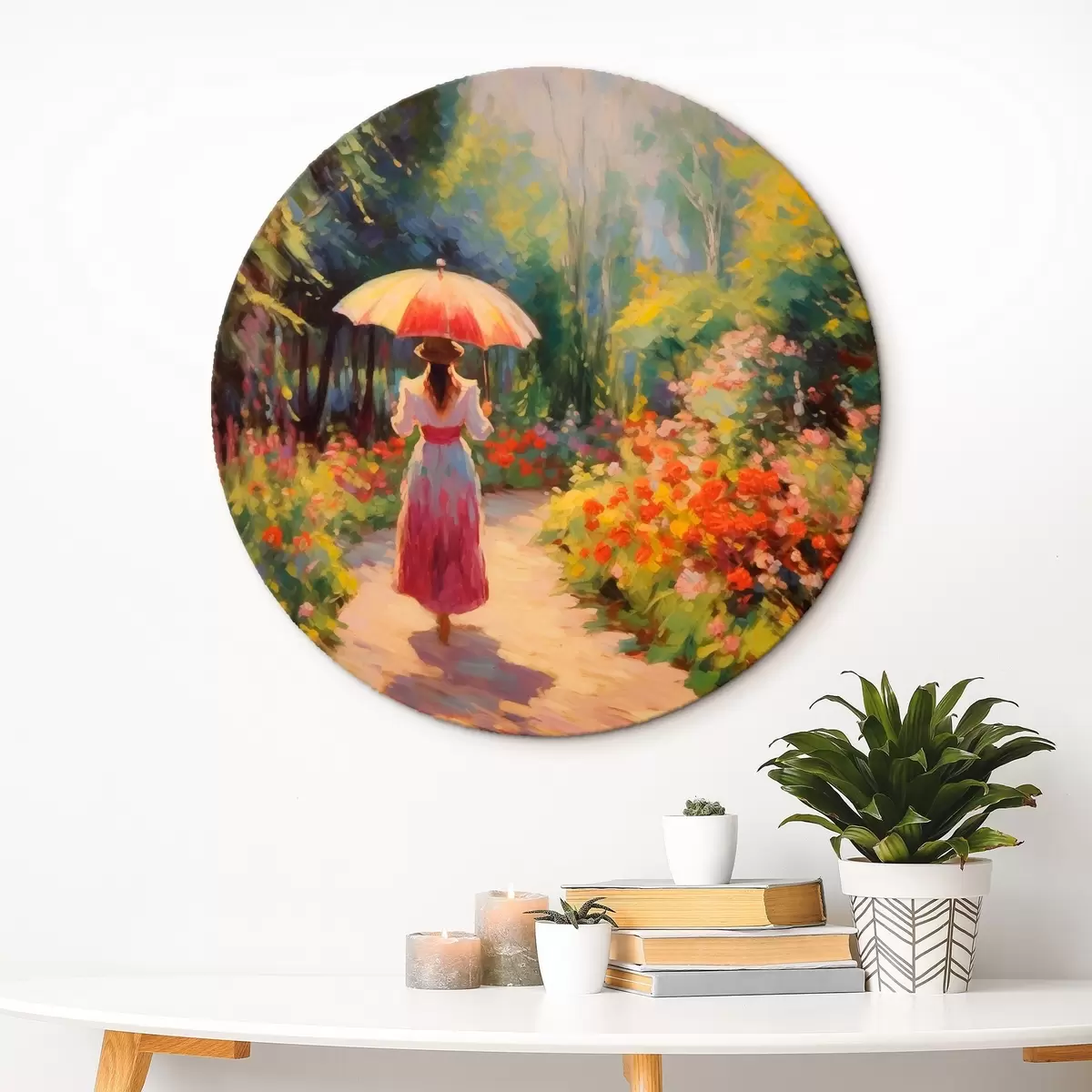 Tableaux rondes Dame avec un parapluie dans un jardin fleuri r41495