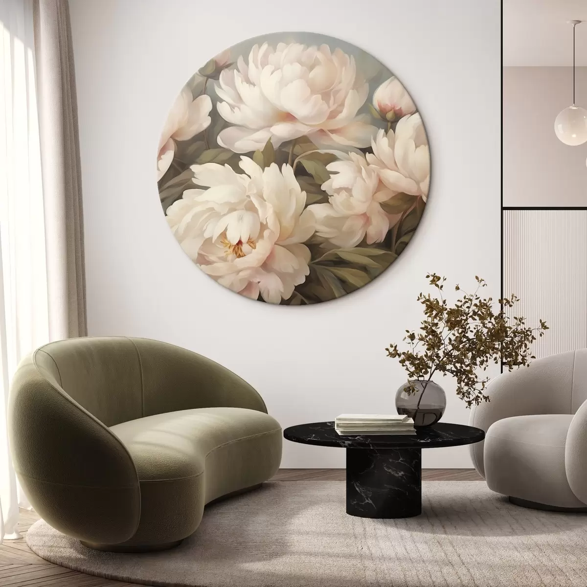 Tableaux rondes Fleurs et feuilles sur fond flou Nr r41763