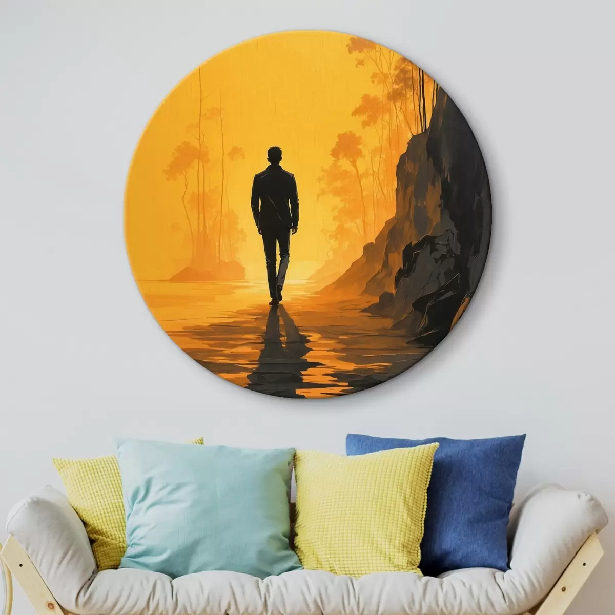Tableaux rondes Homme marchant vers le soleil Nr r41767