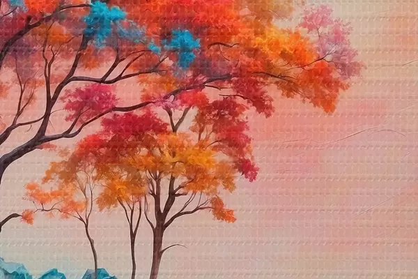 Tableaux rondes Arbres et montagnes abstraites multicolores r41772