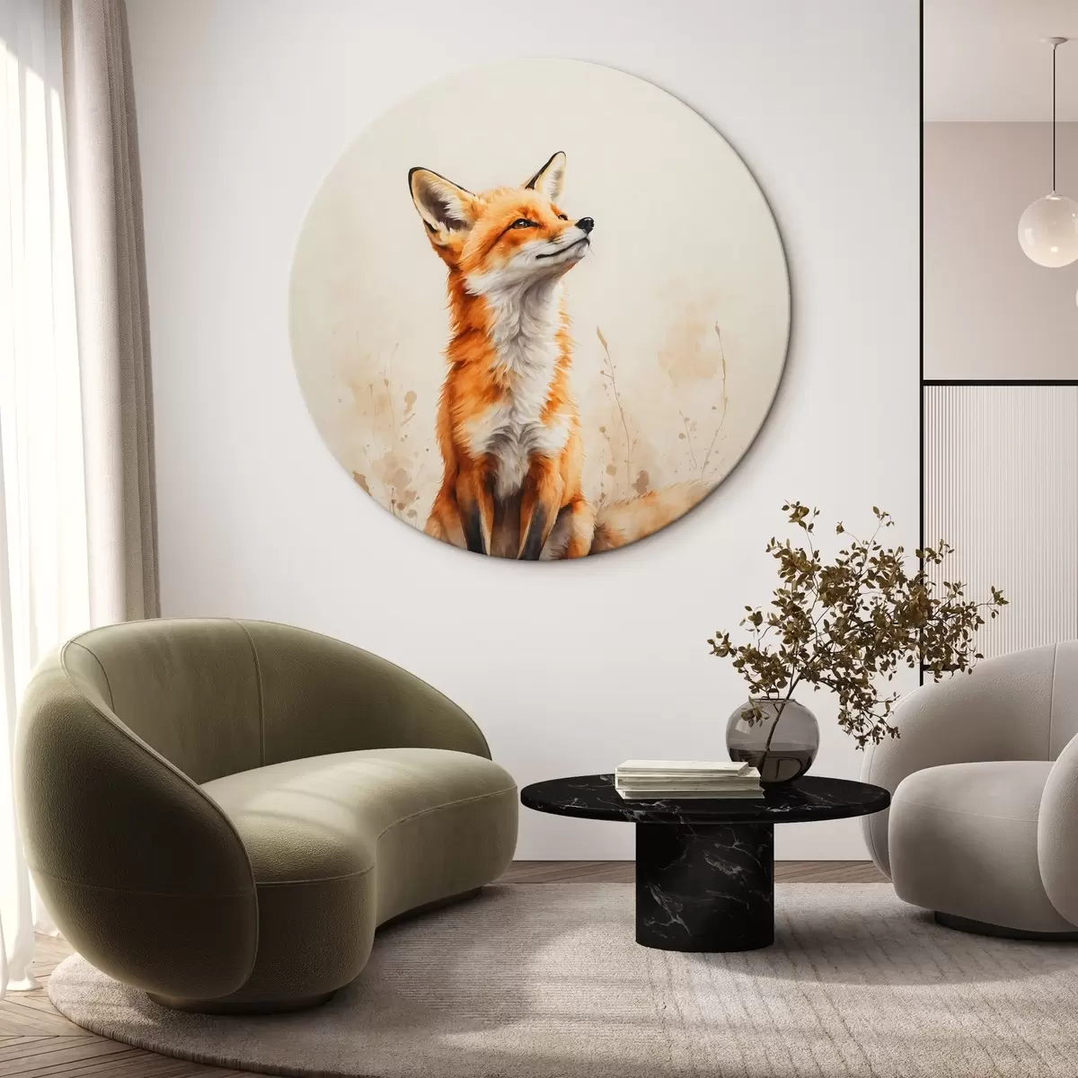 Tableaux rondes Renard sur fond beige r41778