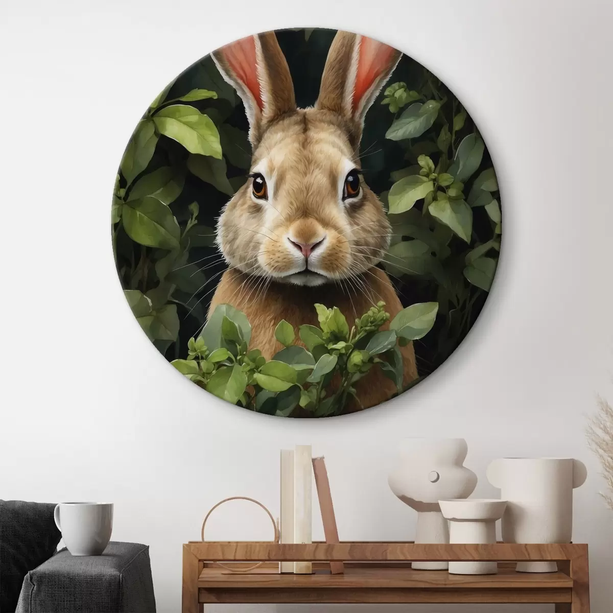 Tableaux rondes Lièvre dans les buissons Nr r41779
