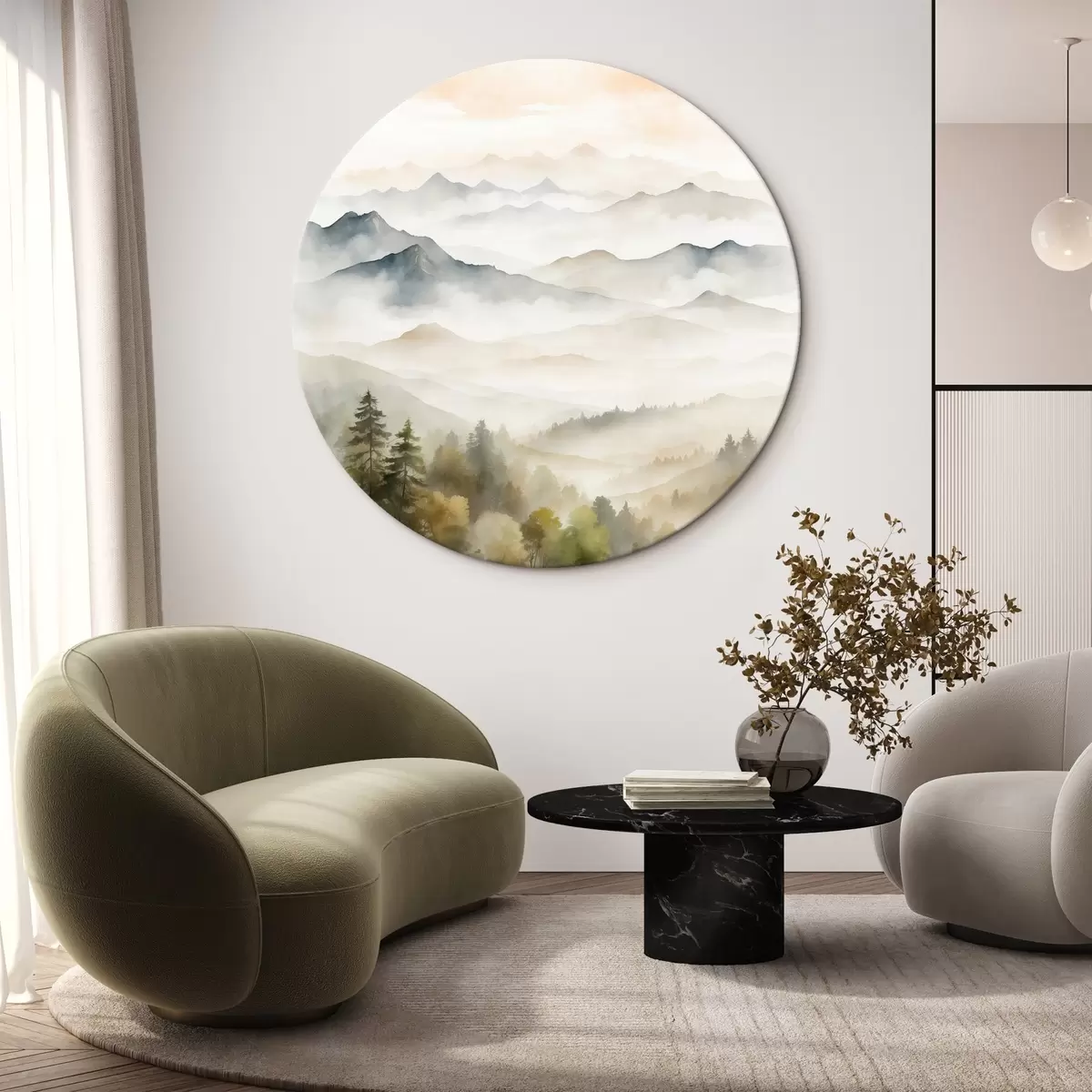 Tableaux rondes Montagnes dans la brume Nr r41781