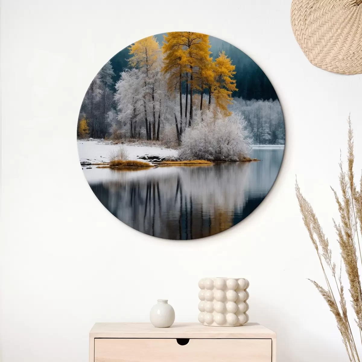 Tableaux rondes Forêt et lac en hiver Nr r41785