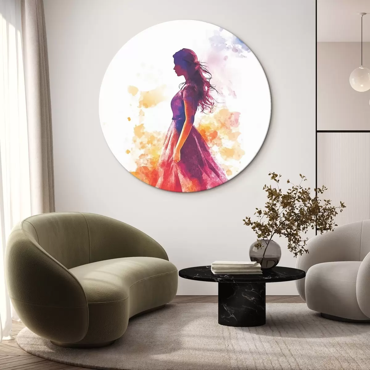 Tableaux rondes Portrait d'une jeune fille à l'aquarelle Nr r42080