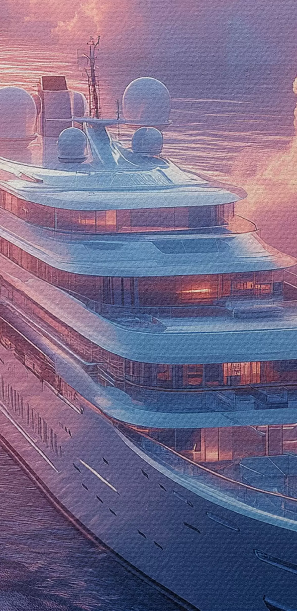 Tableaux rondes Bateau de croisière sur fond de coucher de soleil rose r42085