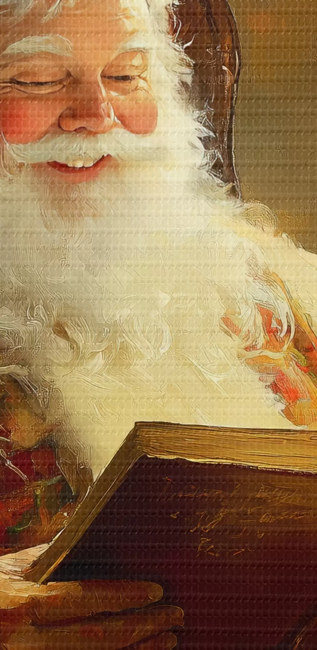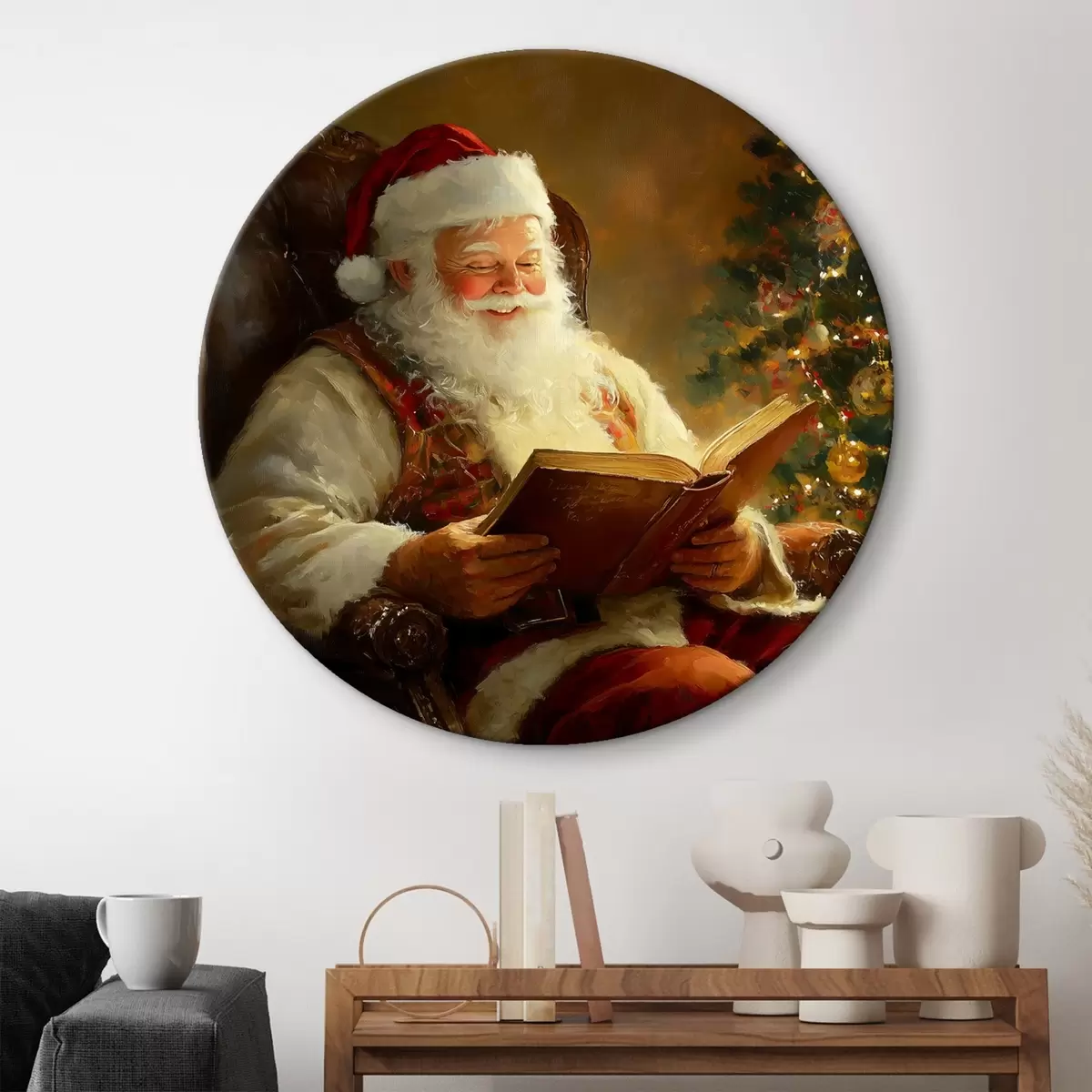 Tableaux rondes Le Père Noël lit un livre près de l'arbre de Noël Nr r42100