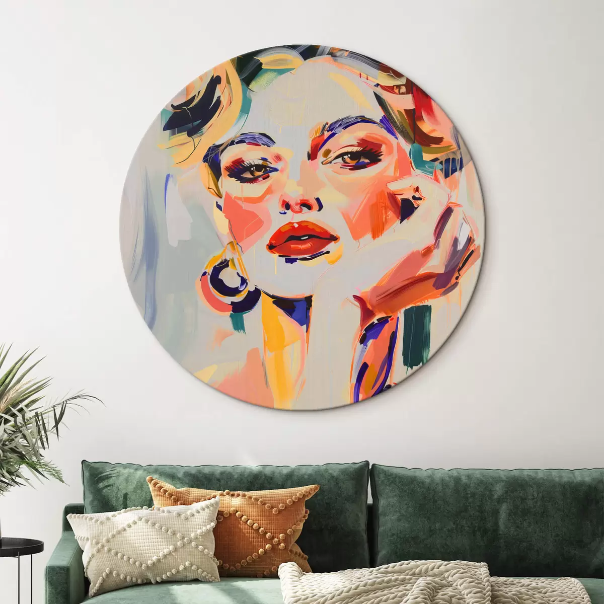Tableaux rondes Portrait d'une femme en traits multicolores Nr r42111