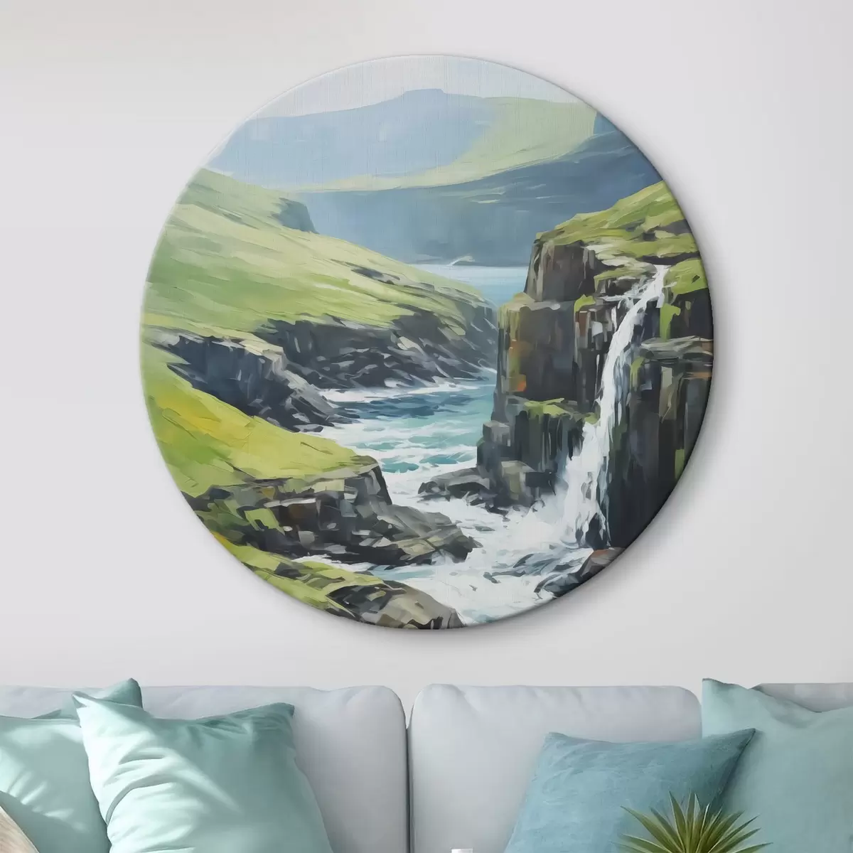 Tableaux rondes Rivière parmi les fjords imitation de peinture r42125
