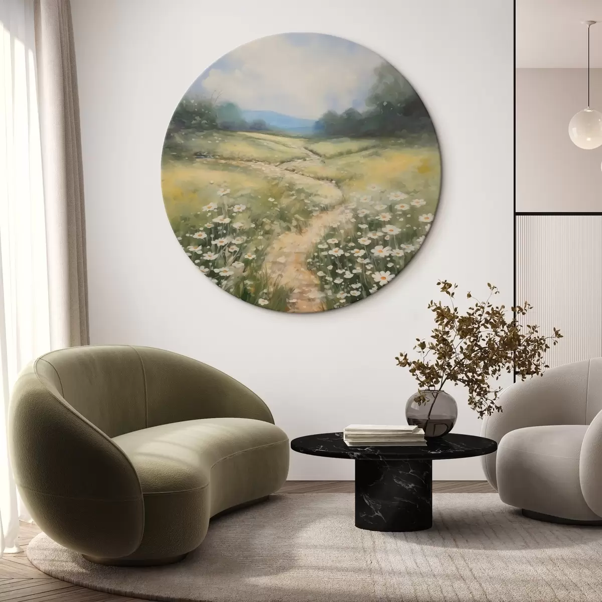 Tableaux rondes Pré avec marguerites imitation de peinture Nr r42134
