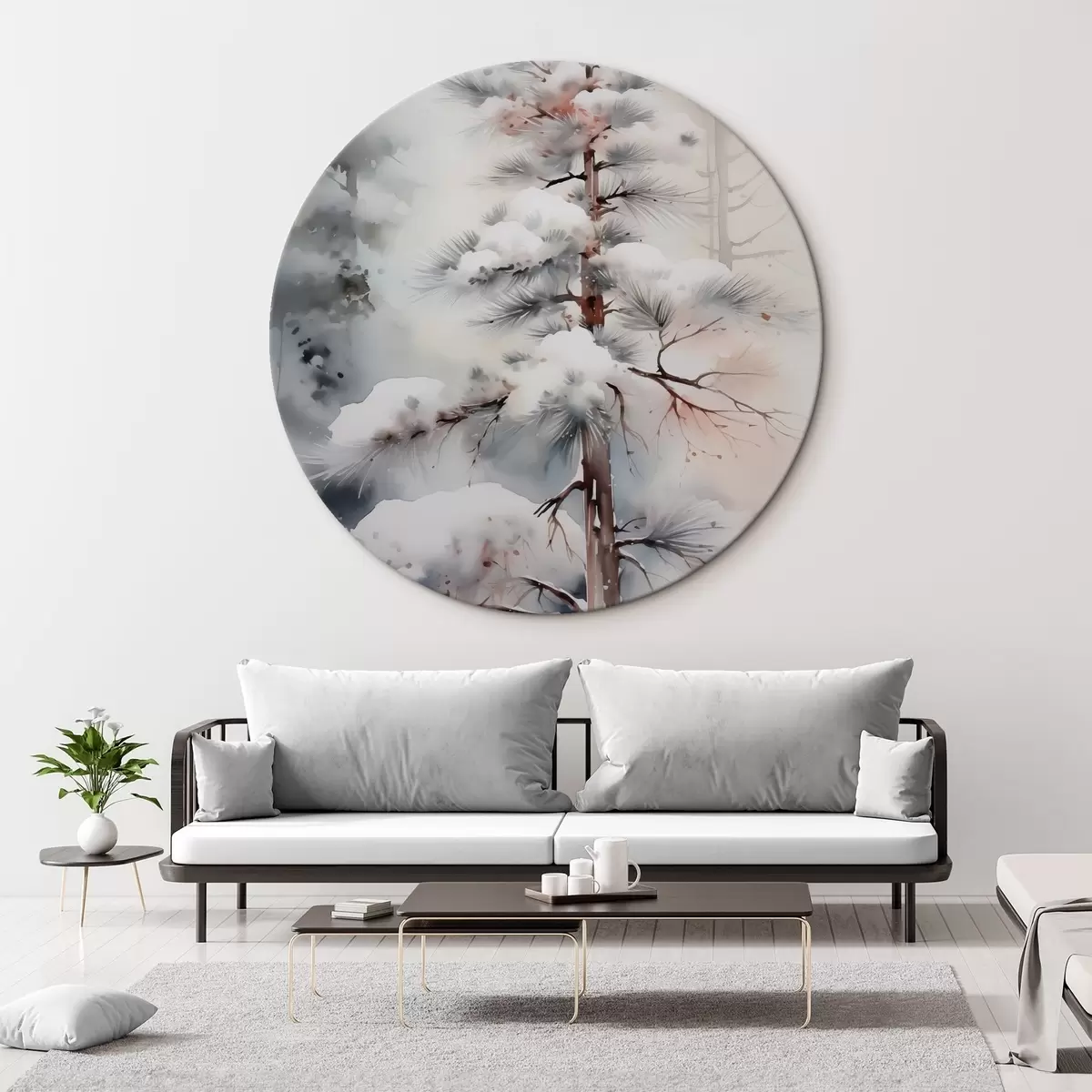 Tableaux rondes Arbre dans une forêt enneigée imitation aquarelle Nr r42139