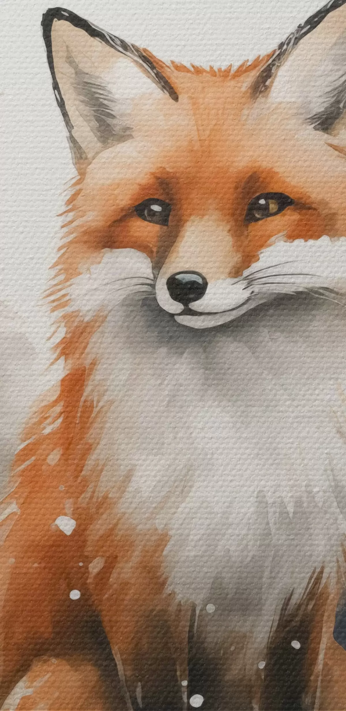 Tableaux rondes Renardeau dans une forêt enneigée imitation aquarelle Nr r42146