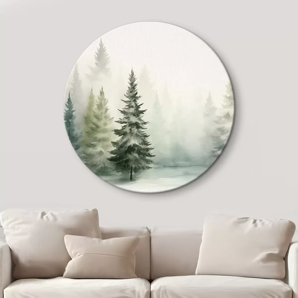 Tableaux rondes Forêt de sapins brumeuse Nr r42154