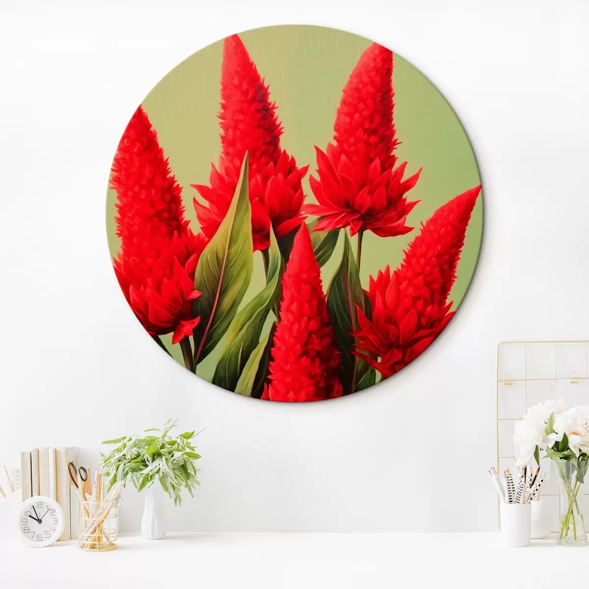 Tableaux rondes Fleurs rouges sur fond vert Nr r42166