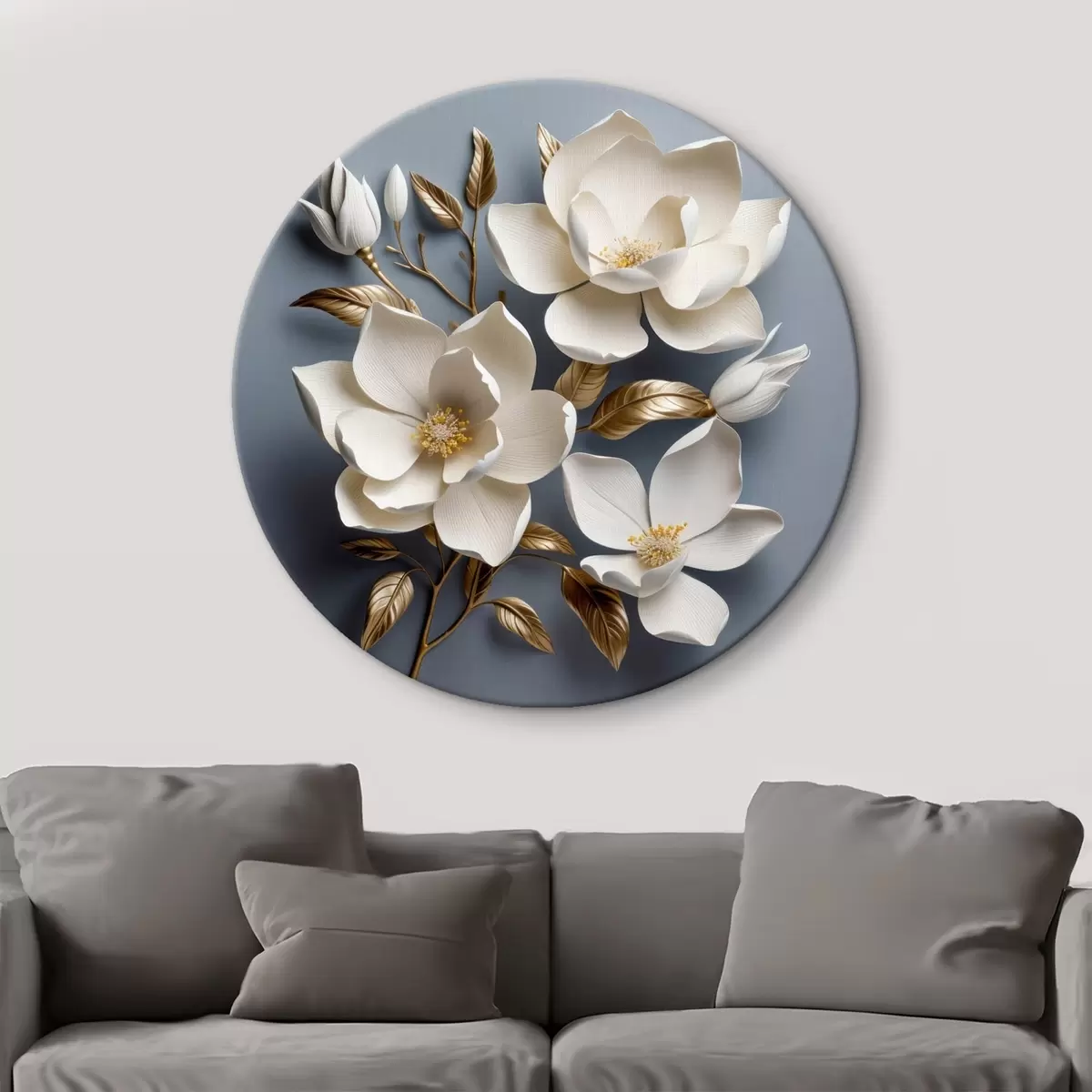 Tableaux rondes Grandes fleurs sur fond gris clair Nr r42174