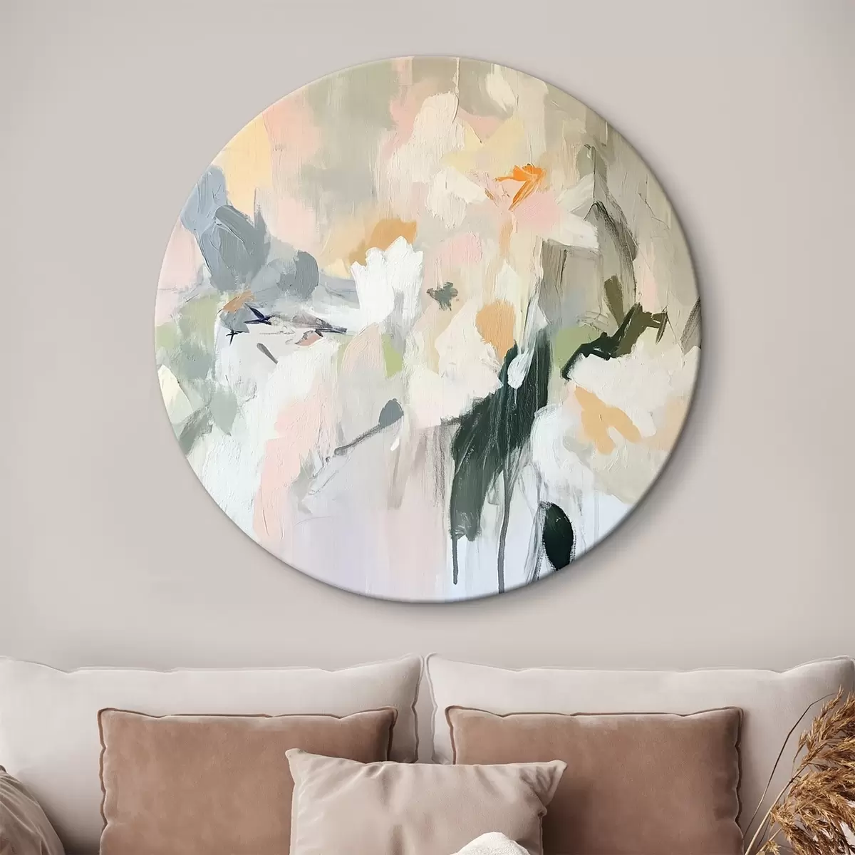Tableaux rondes Dessin abstrait, style acrylique, couleurs douces et naturelles r42204