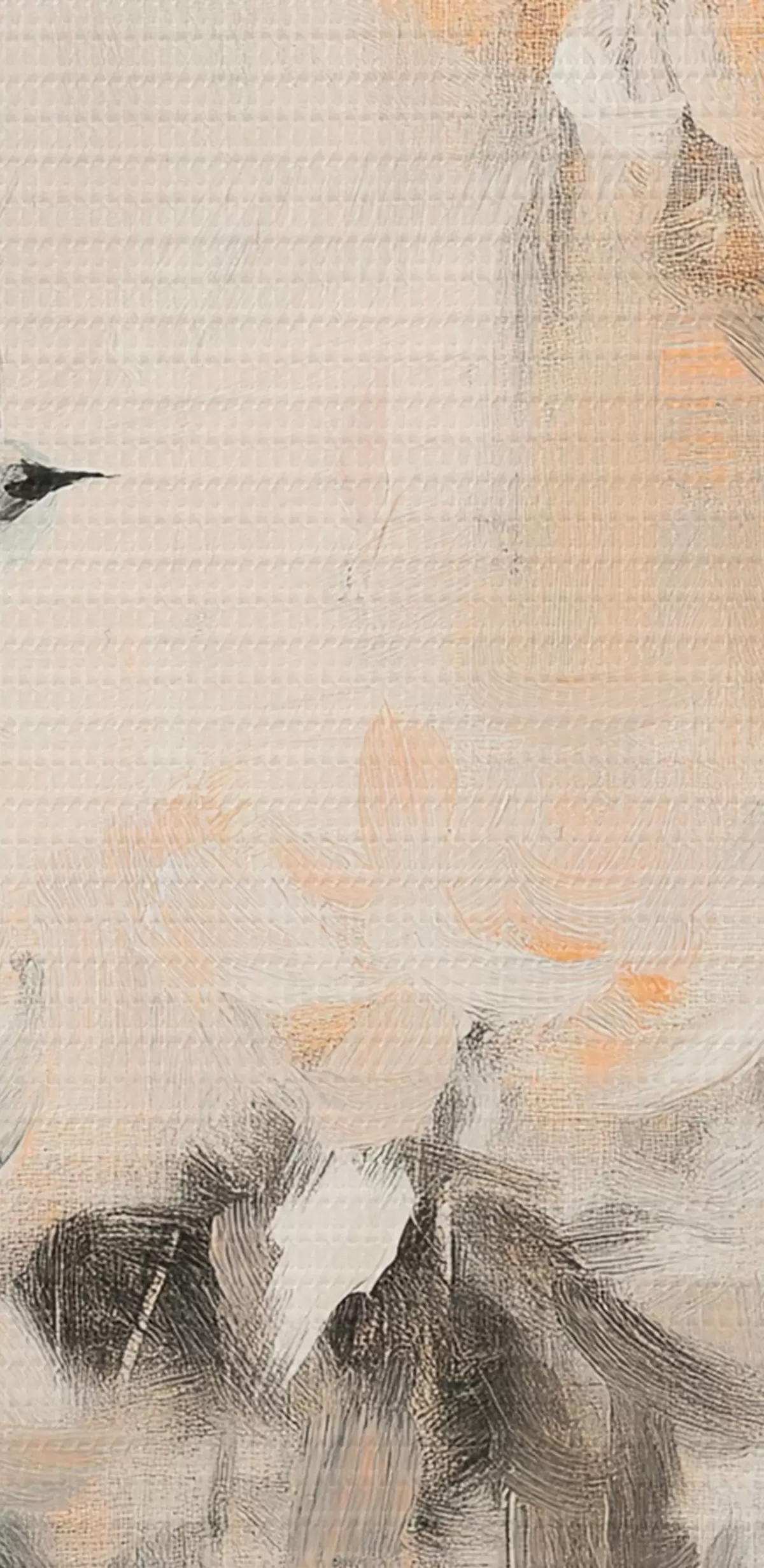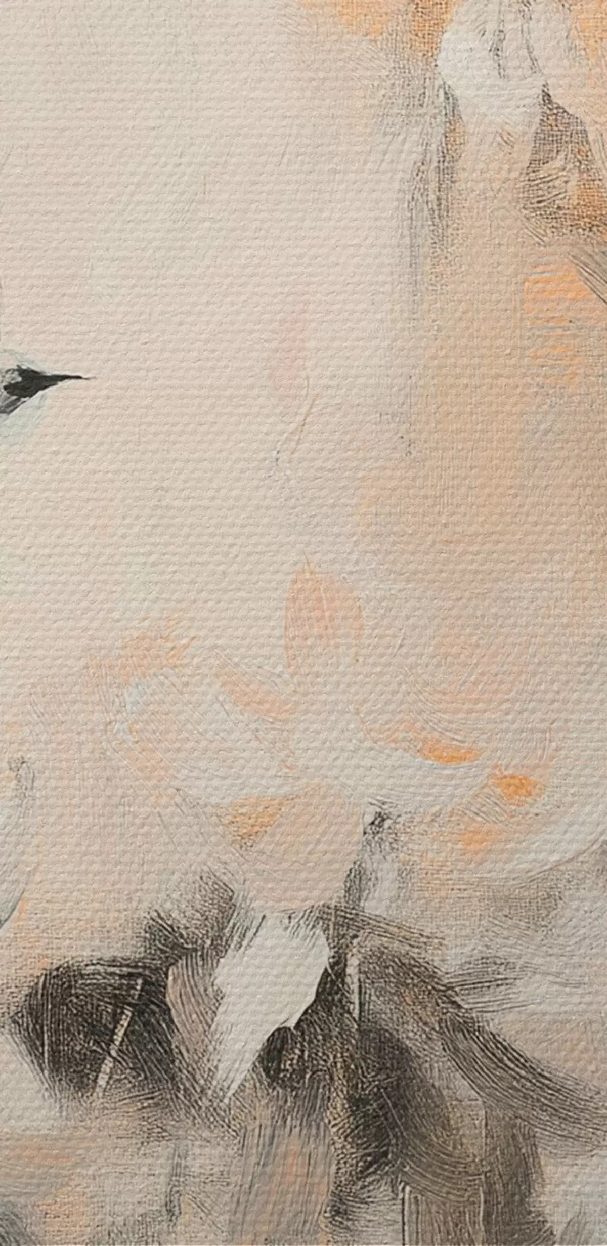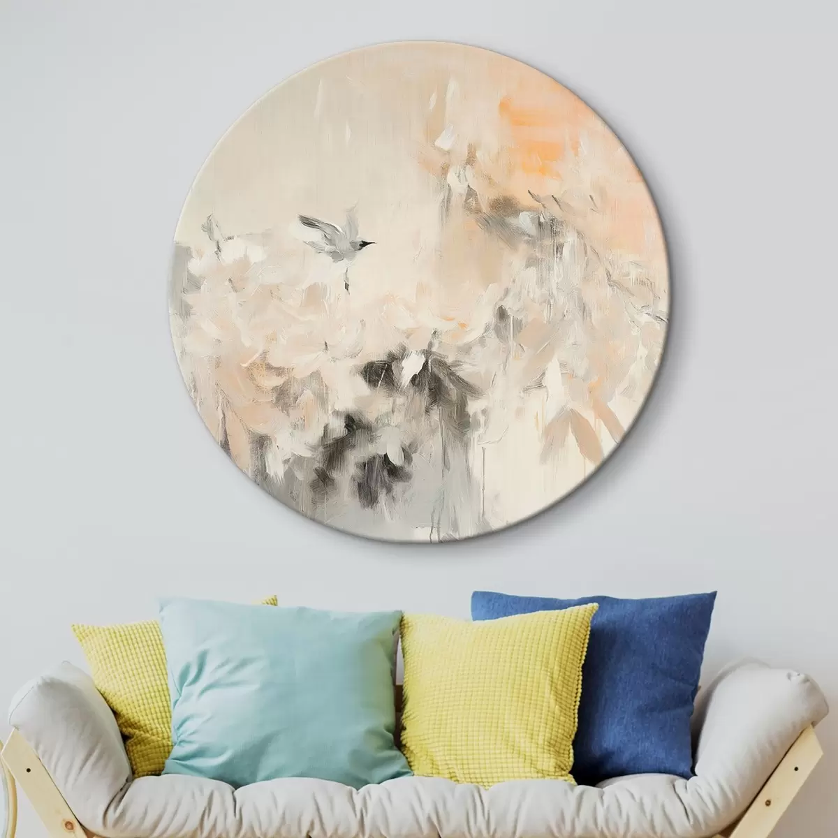 Tableaux rondes Abstraction avec oiseaux en vol, style acrylique, couleurs rose et beige Nr r42205