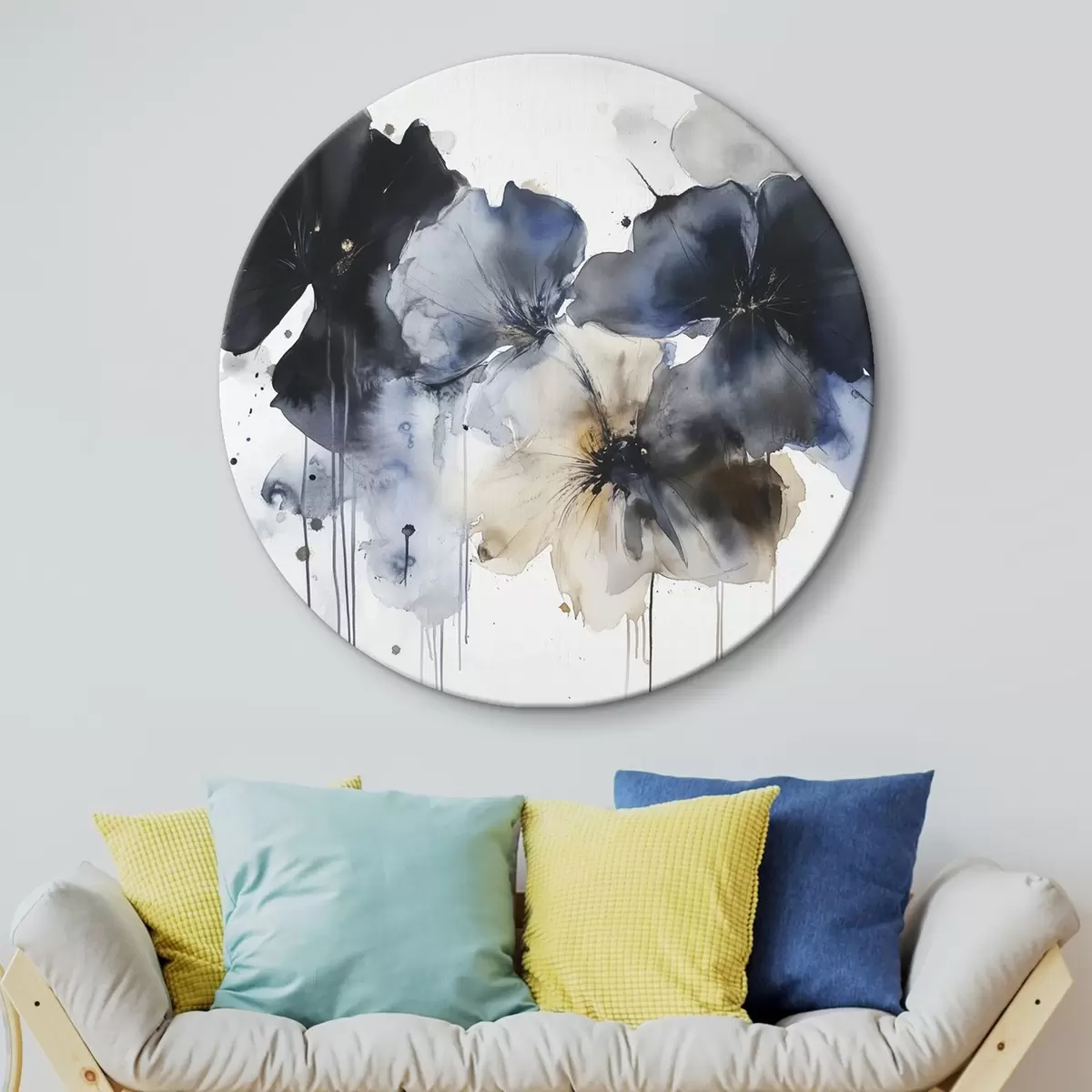 Tableaux rondes Aquarelle de fleurs, style fluide, couleurs bleues Nr r42207
