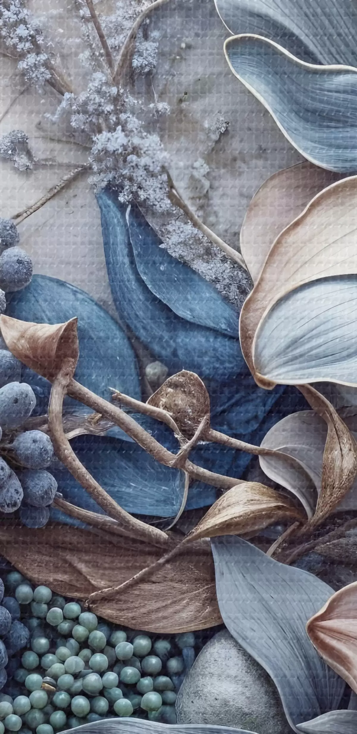 Tableaux rondes Une fleur luxuriante abstraite texturée et détaillée avec de grandes fleurs bleues et roses vibrantes, des baies et d'autres éléments botaniques r42210
