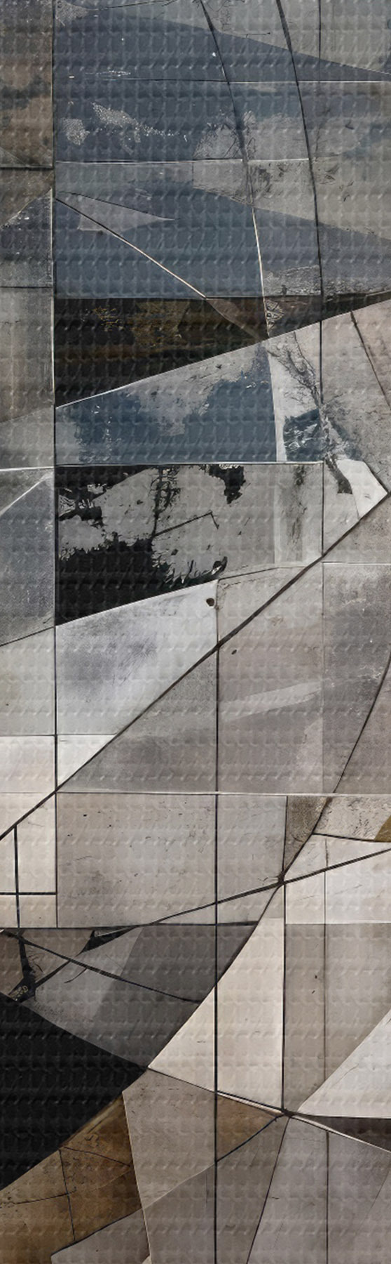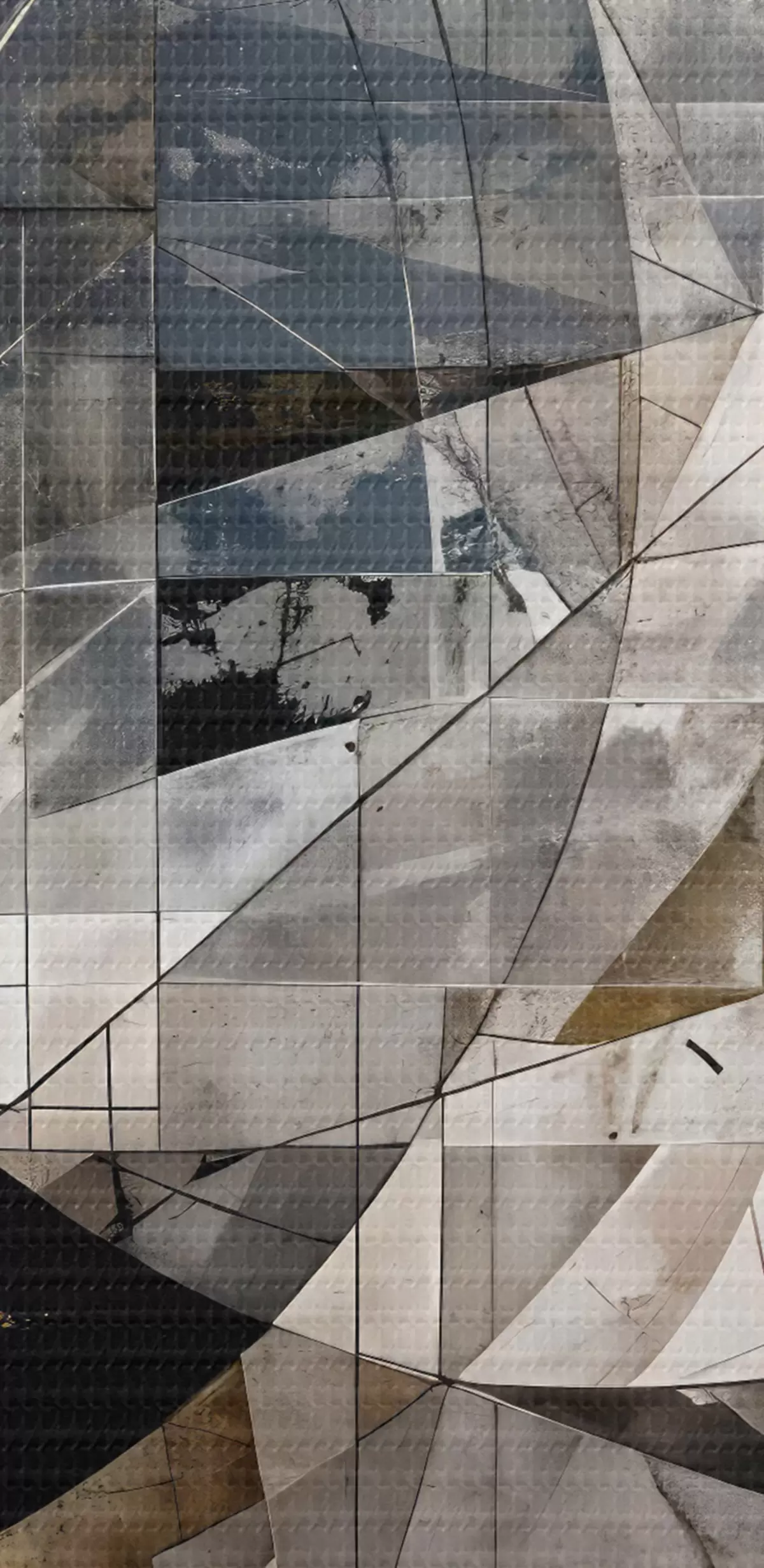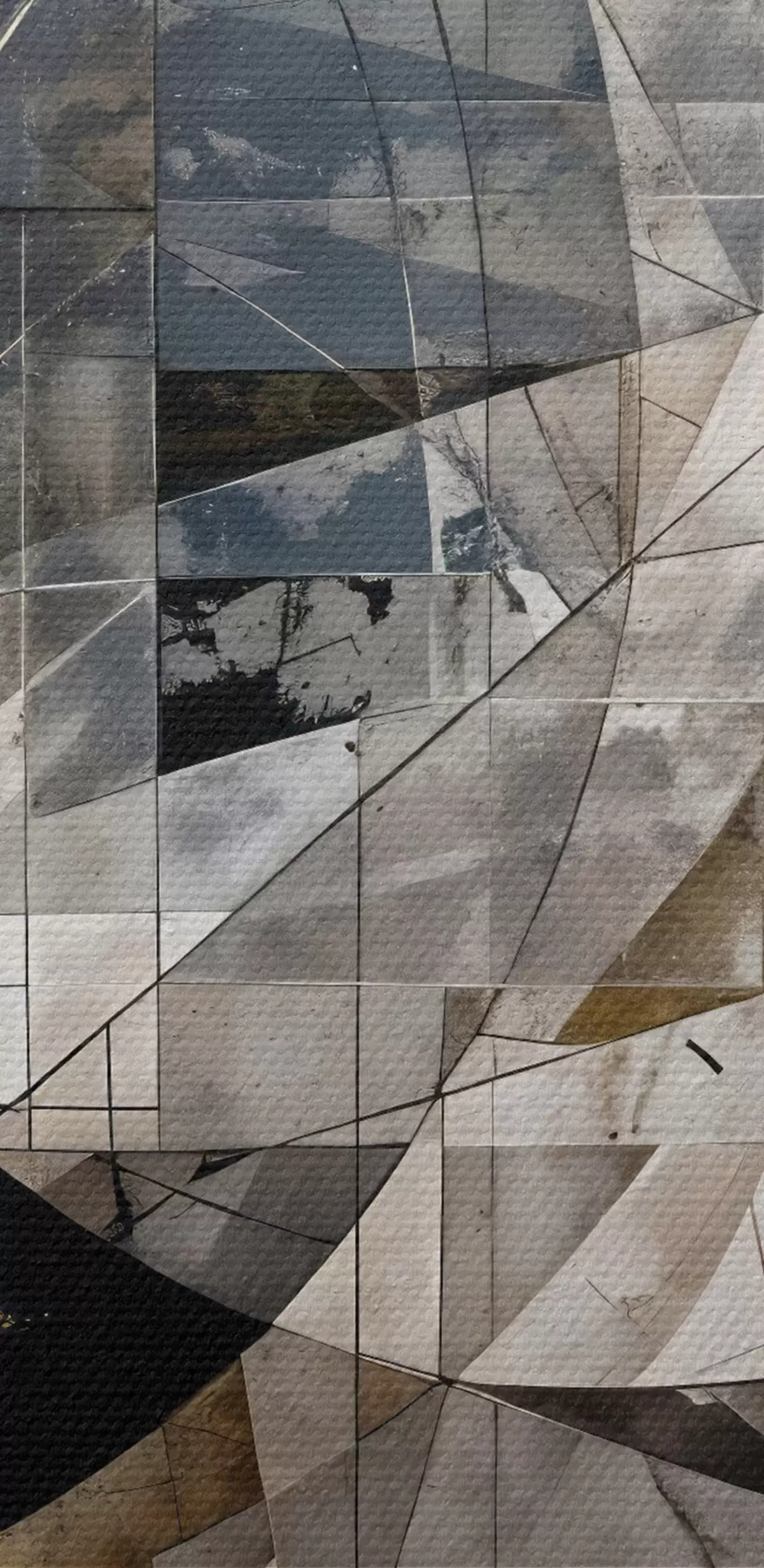 Tableaux rondes Composition géométrique abstraite et moderne avec des formes qui se chevauchent et des imprimés dans les tons gris, noirs et beiges Nr r42212