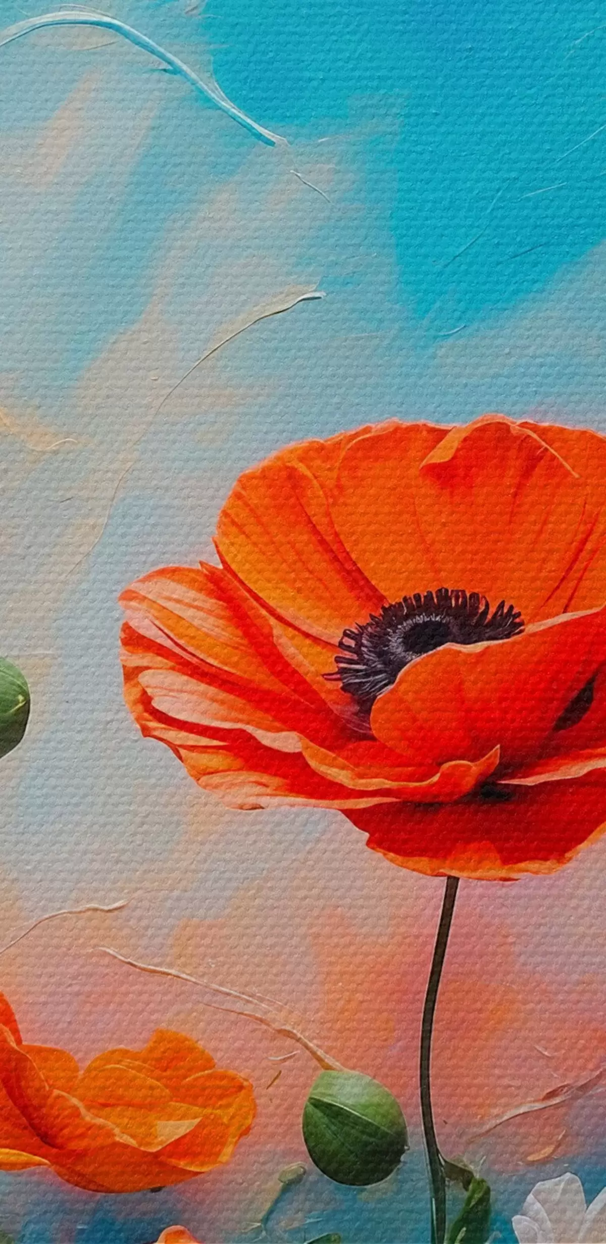Tableaux rondes Marguerites et coquelicots sur fond bleu r42261