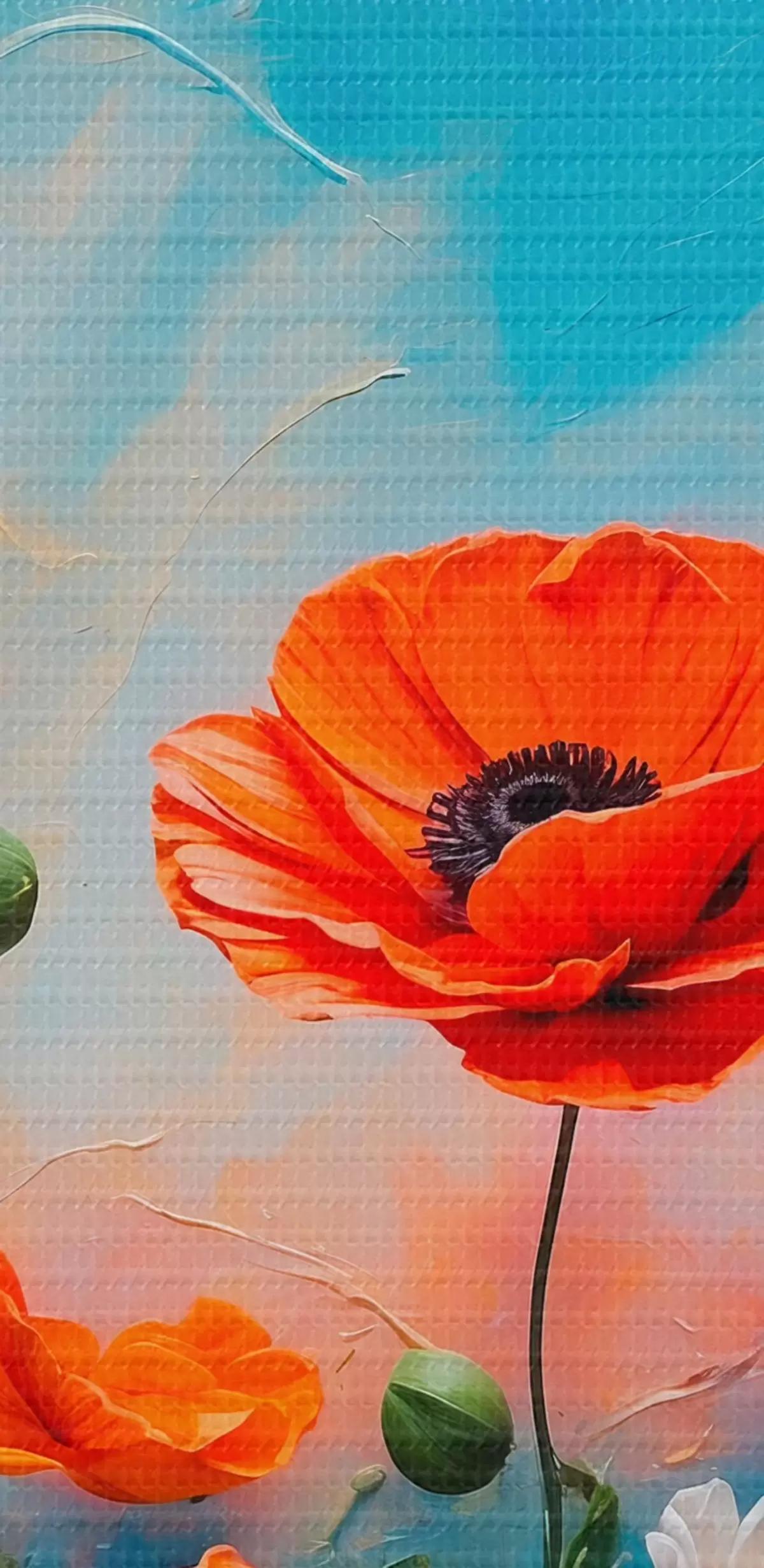 Tableaux rondes Marguerites et coquelicots sur fond bleu Nr r42261