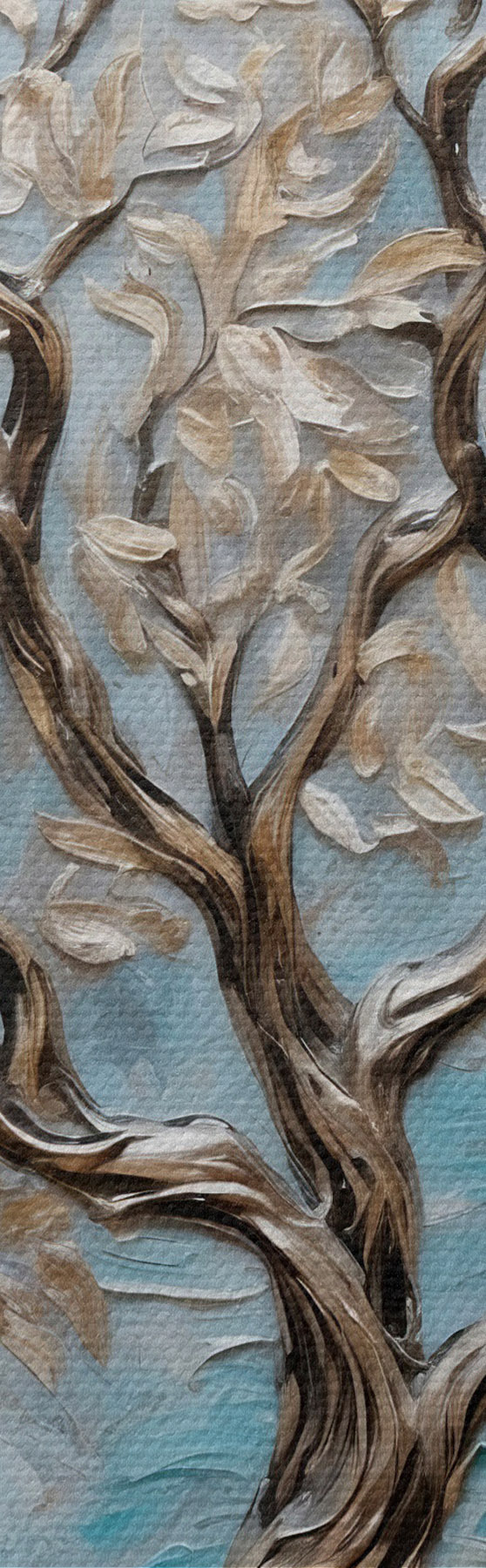 Tableaux rondes Arbre argenté sur fond bleu-gris Nr r42273