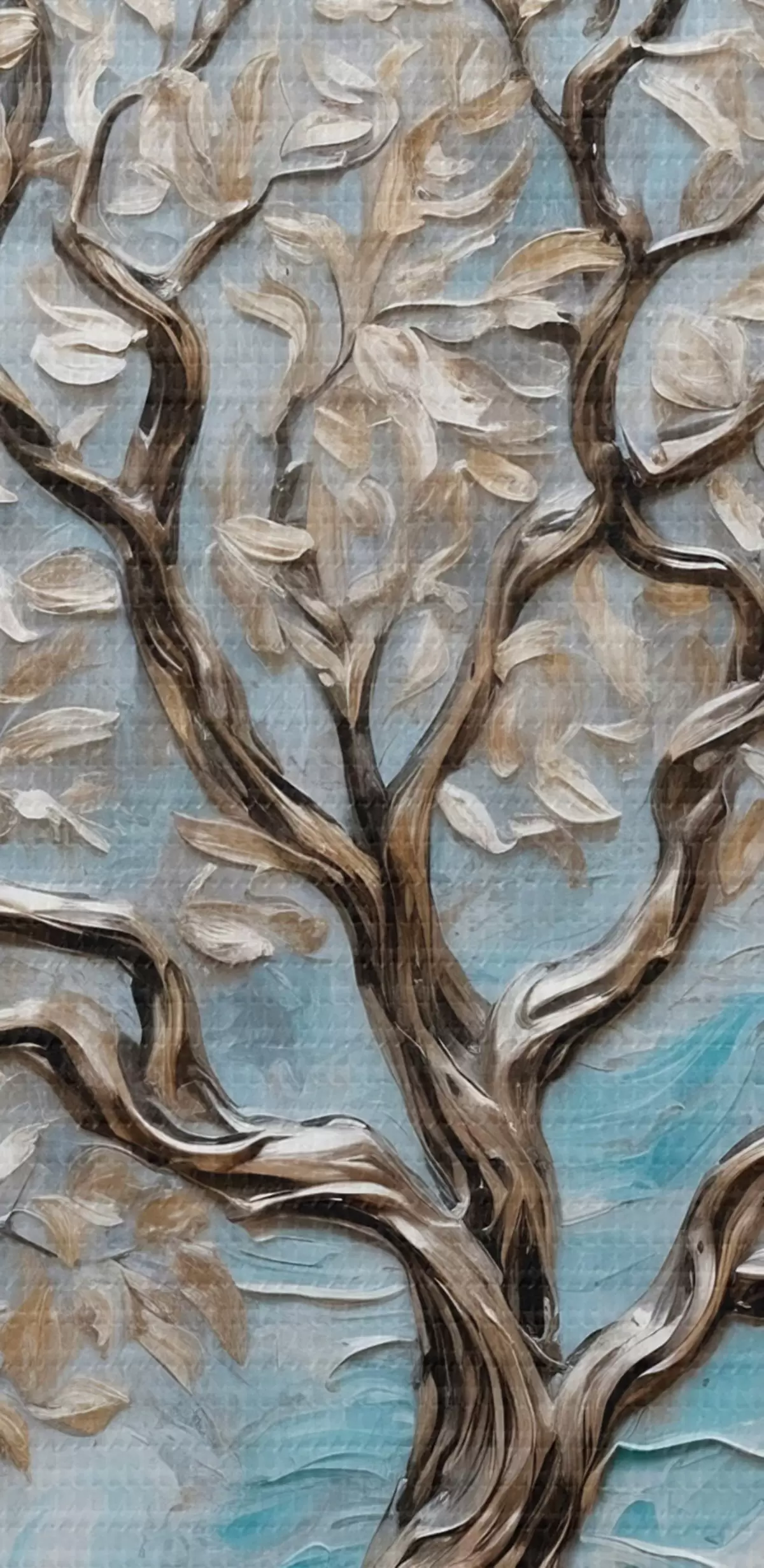 Tableaux rondes Arbre argenté sur fond bleu-gris r42273