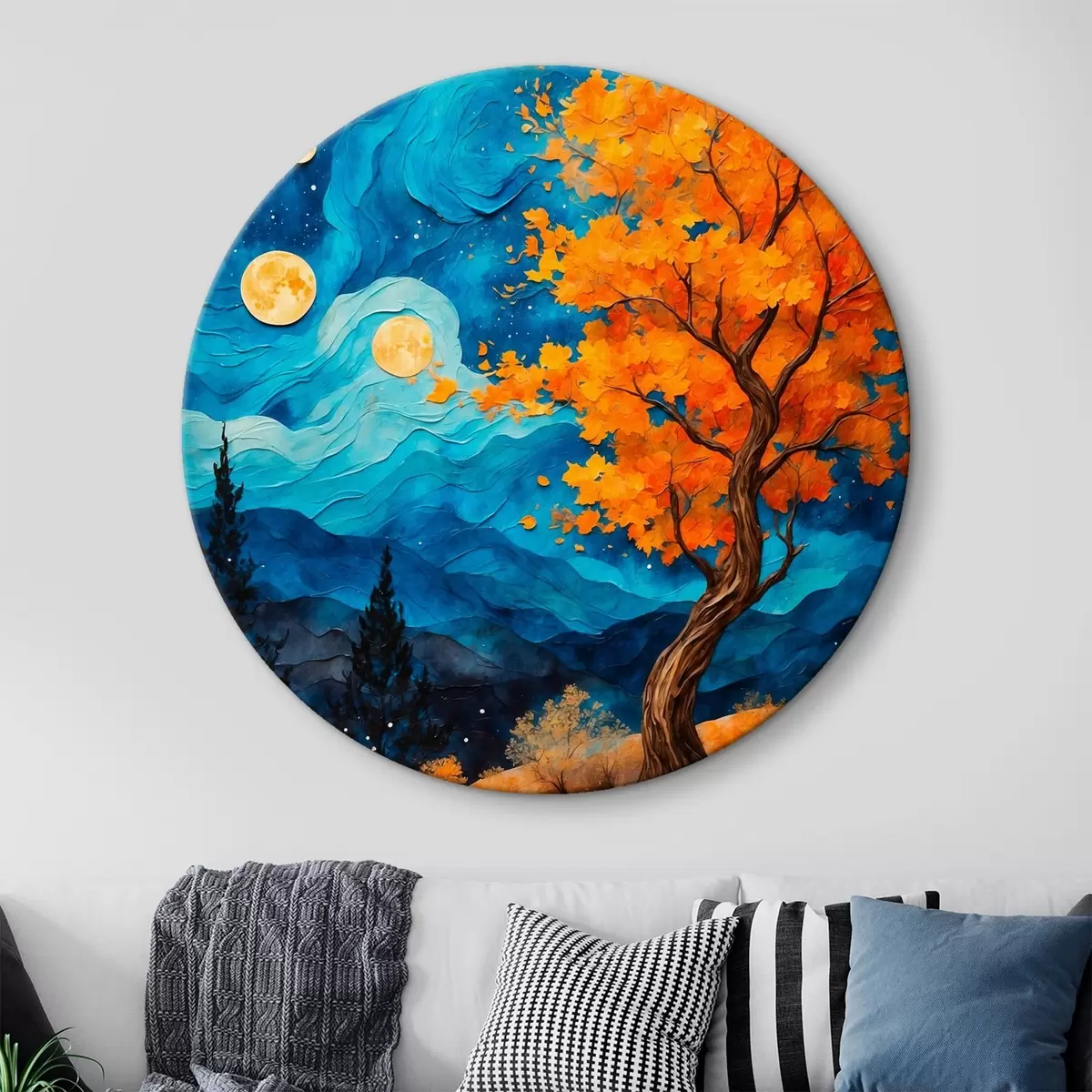 Tableaux rondes Arbre poussant sur une colline la nuit Nr r42274