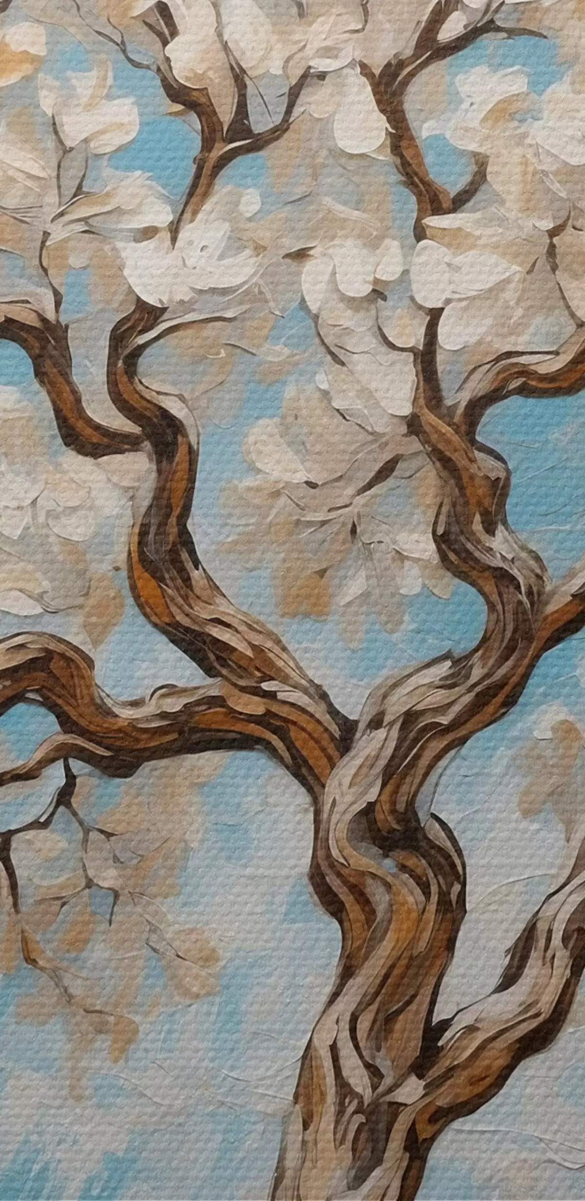 Tableaux rondes Arbre blanc sur fond bleu-blanc Nr r42275