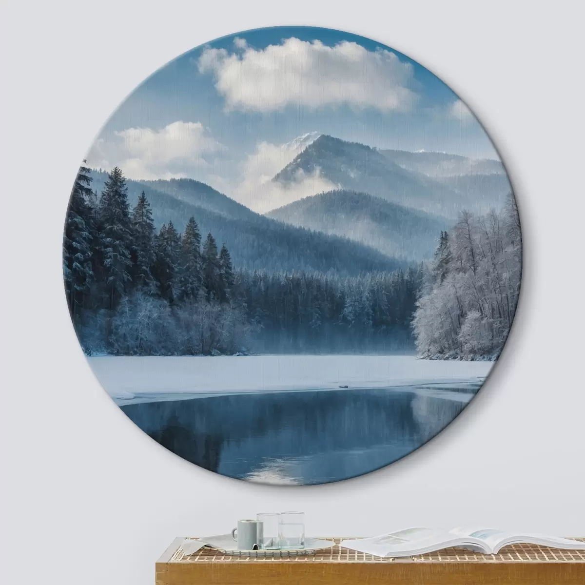 Tableaux rondes Vue sur la forêt et les montagnes en hiver Nr r42278