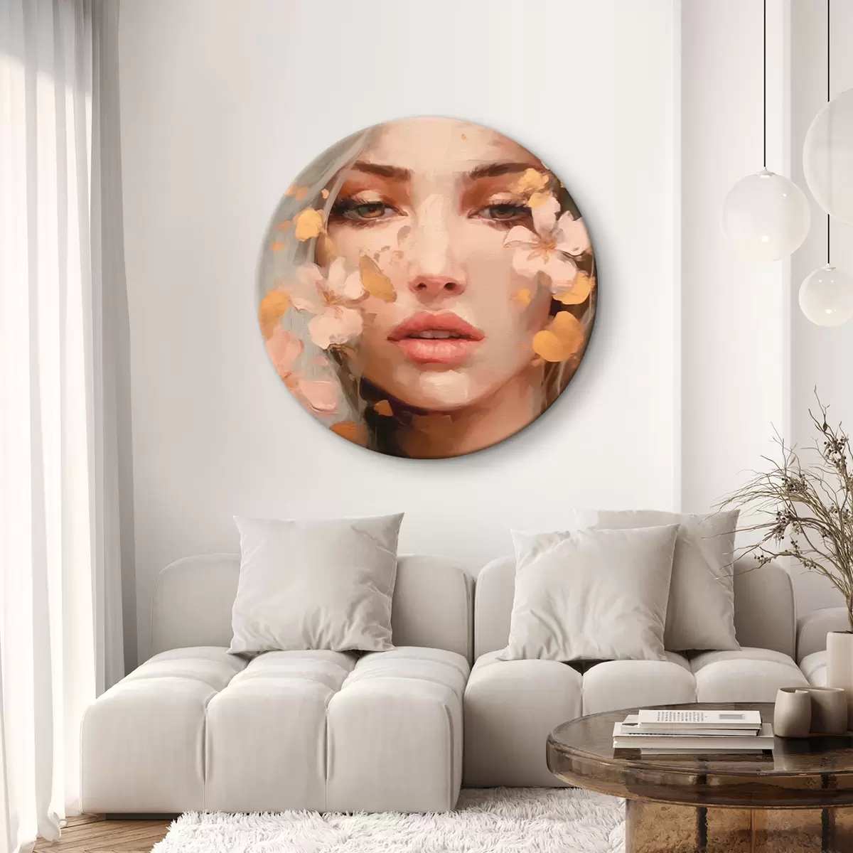 Tableaux rondes Fille et fleurs roses Nr r42301
