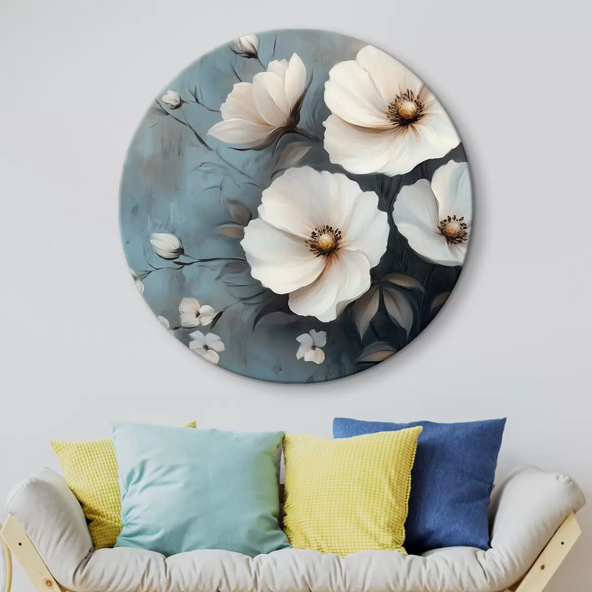 Tableaux rondes Fleurs blanches sur fond bleu Nr r42319