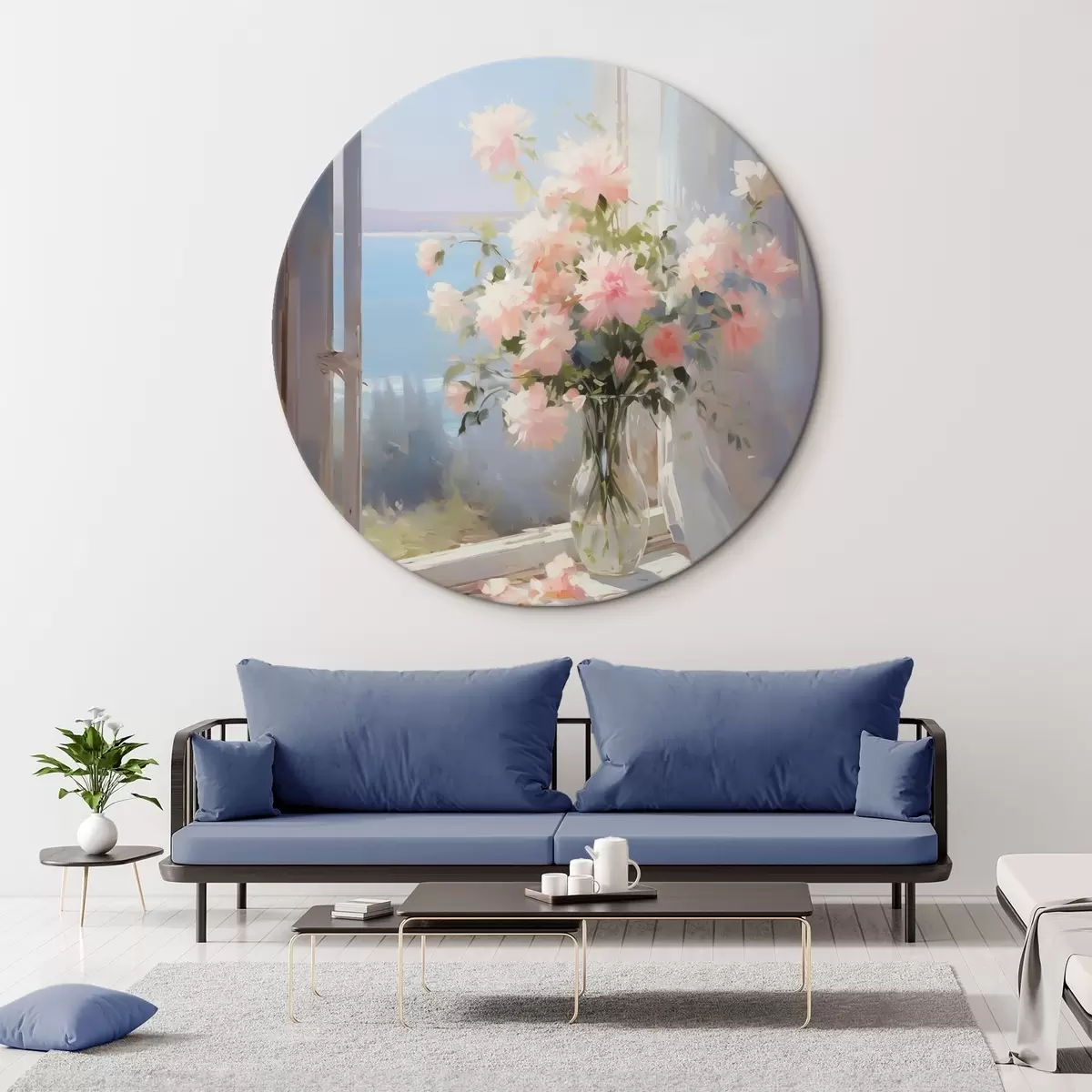 Tableaux rondes Bouquet de fleurs délicates dans un vase en verre imitation peinture r42352
