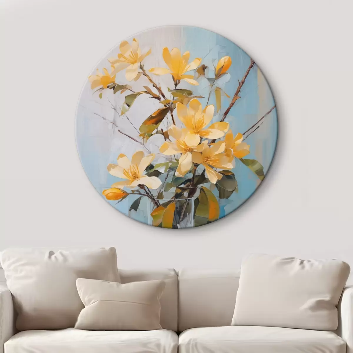 Tableaux rondes Branches avec fleurs jaunes dans un vase imitation peinture Nr r42358