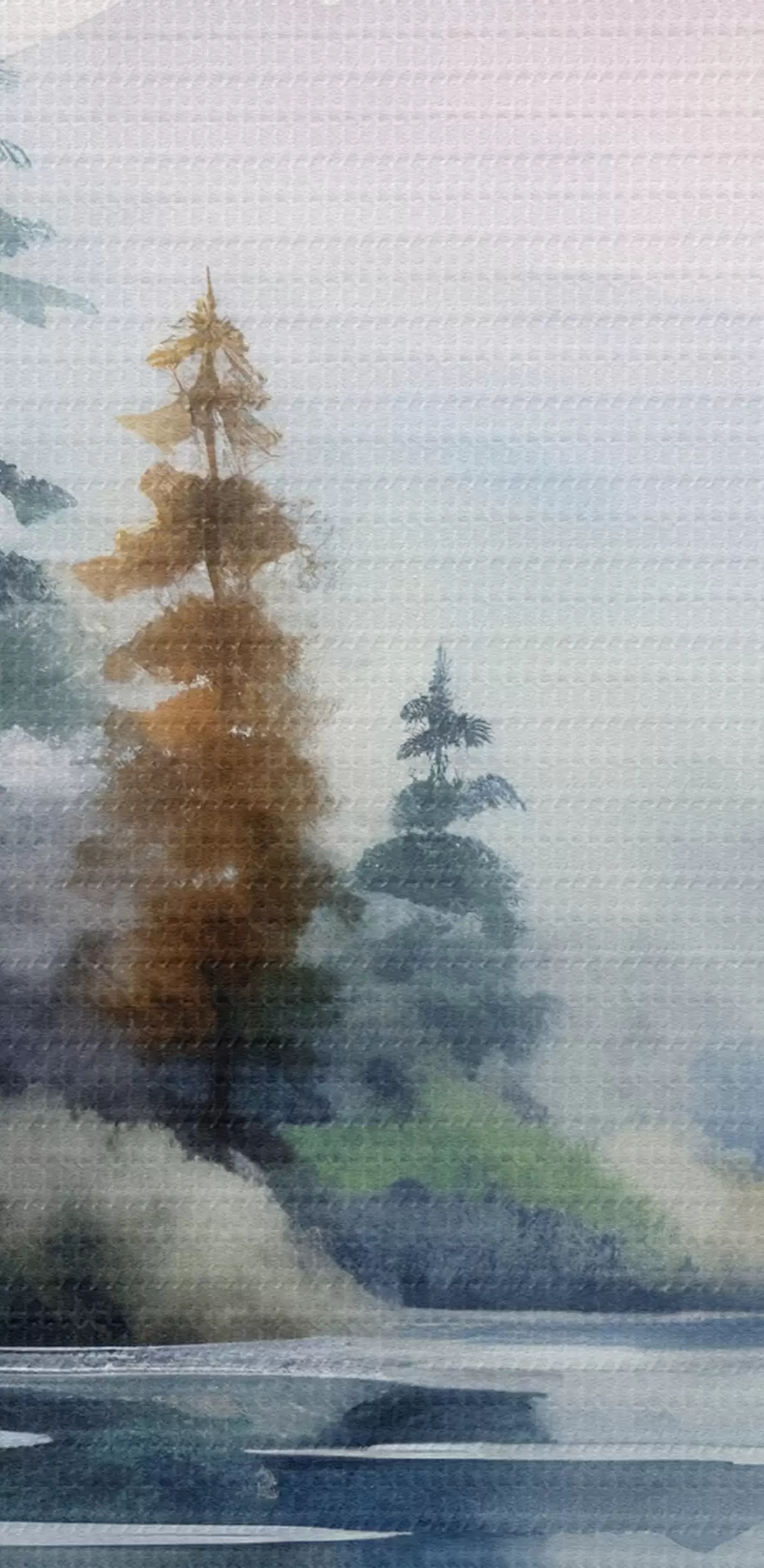 Tableaux rondes Forêt dans le brouillard sur fond de lac Nr r42384