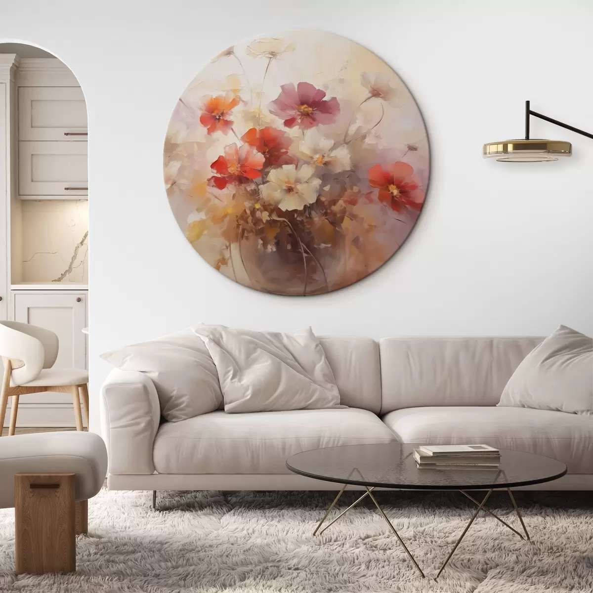 Tableaux rondes Fleurs dans un vase imitation peinture r42413