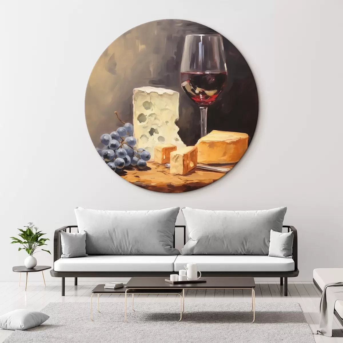 Tableaux rondes Verre de vin rouge et fromages imitation peinture Nr r42415