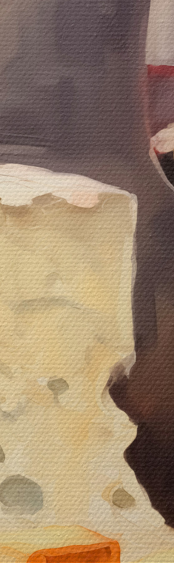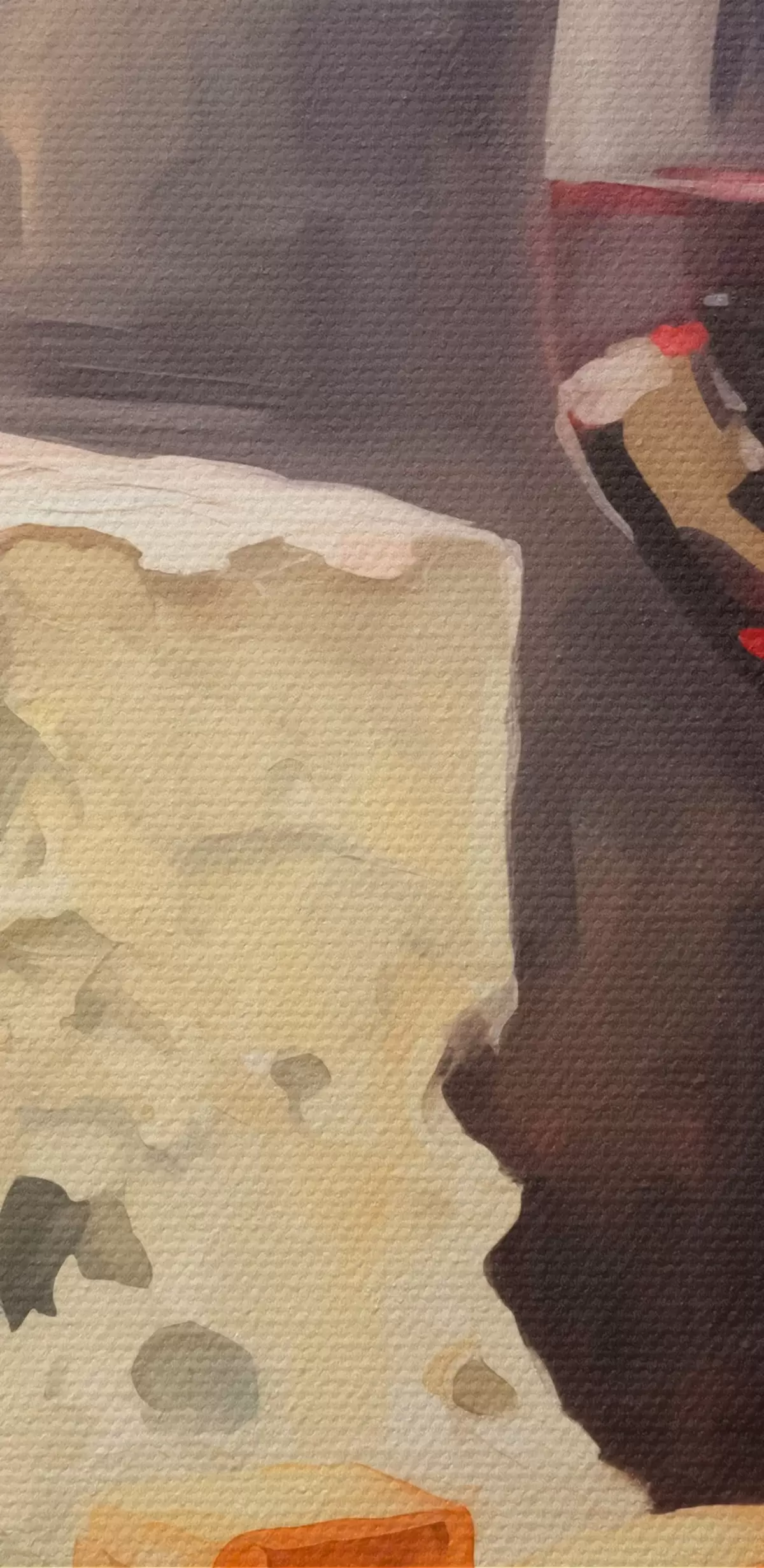 Tableaux rondes Verre de vin rouge et fromages imitation peinture r42415