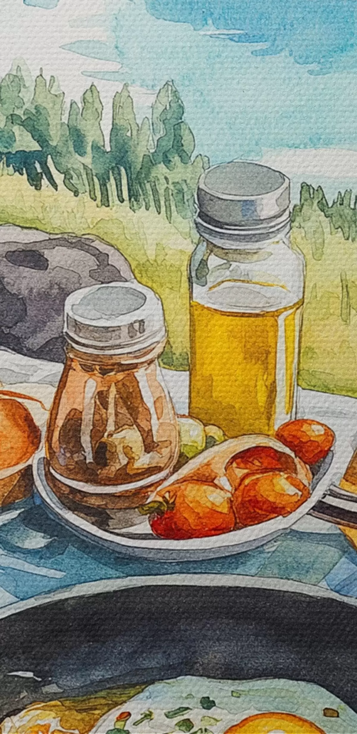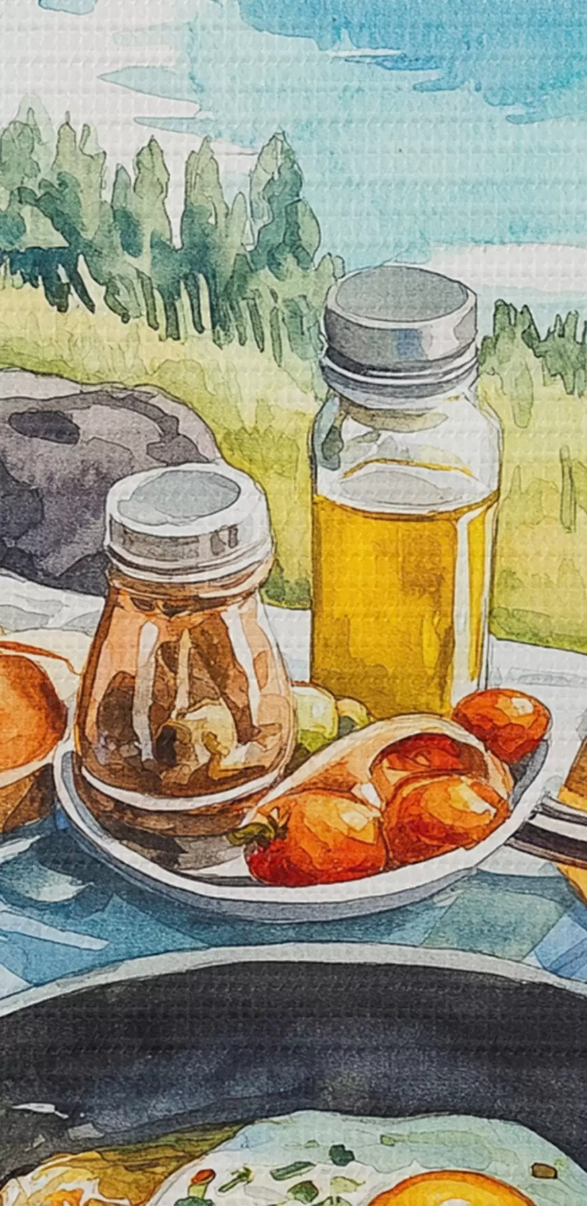 Tableaux rondes Petit déjeuner esthétique près du lac, style aquarelle r42432