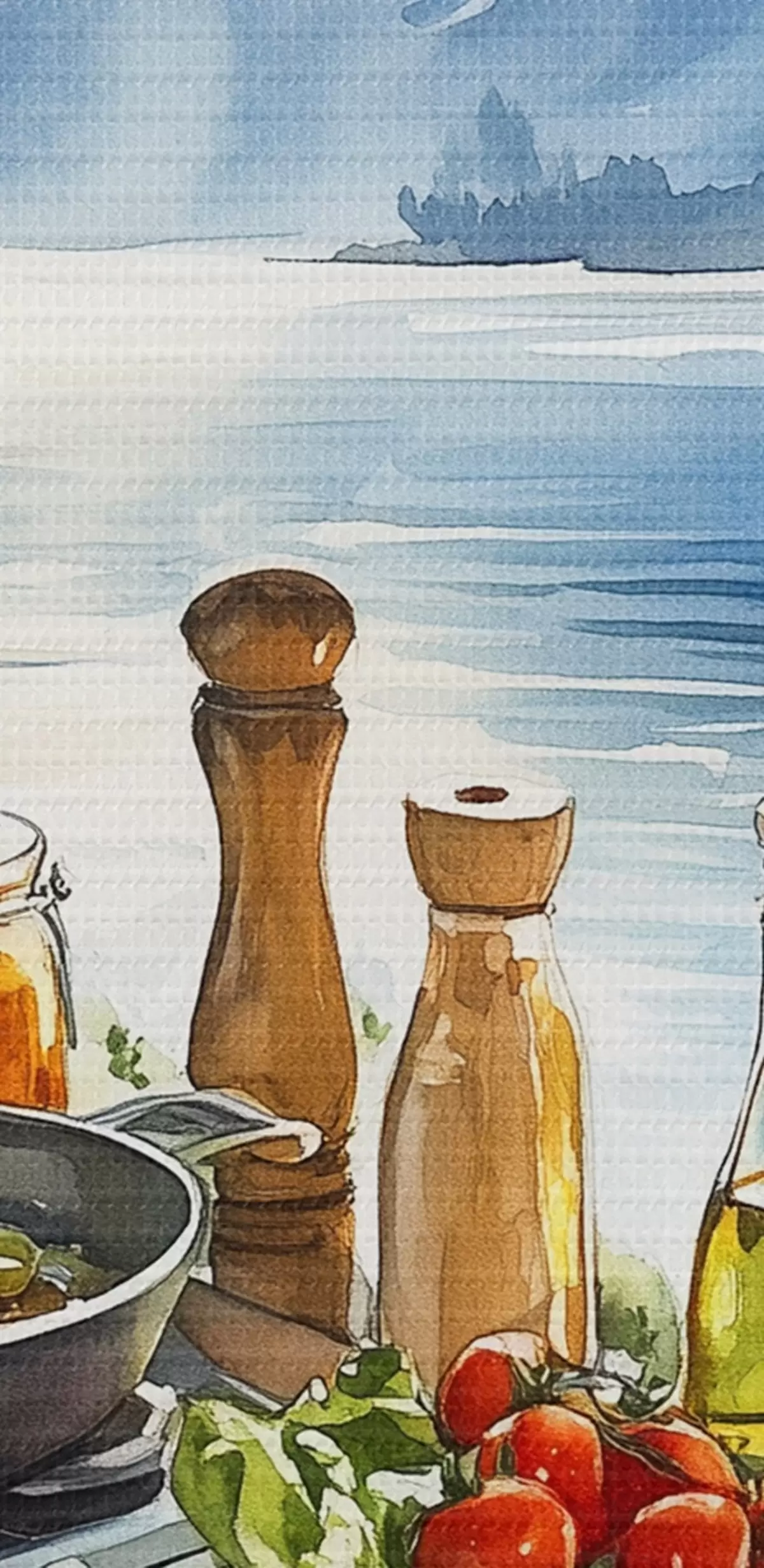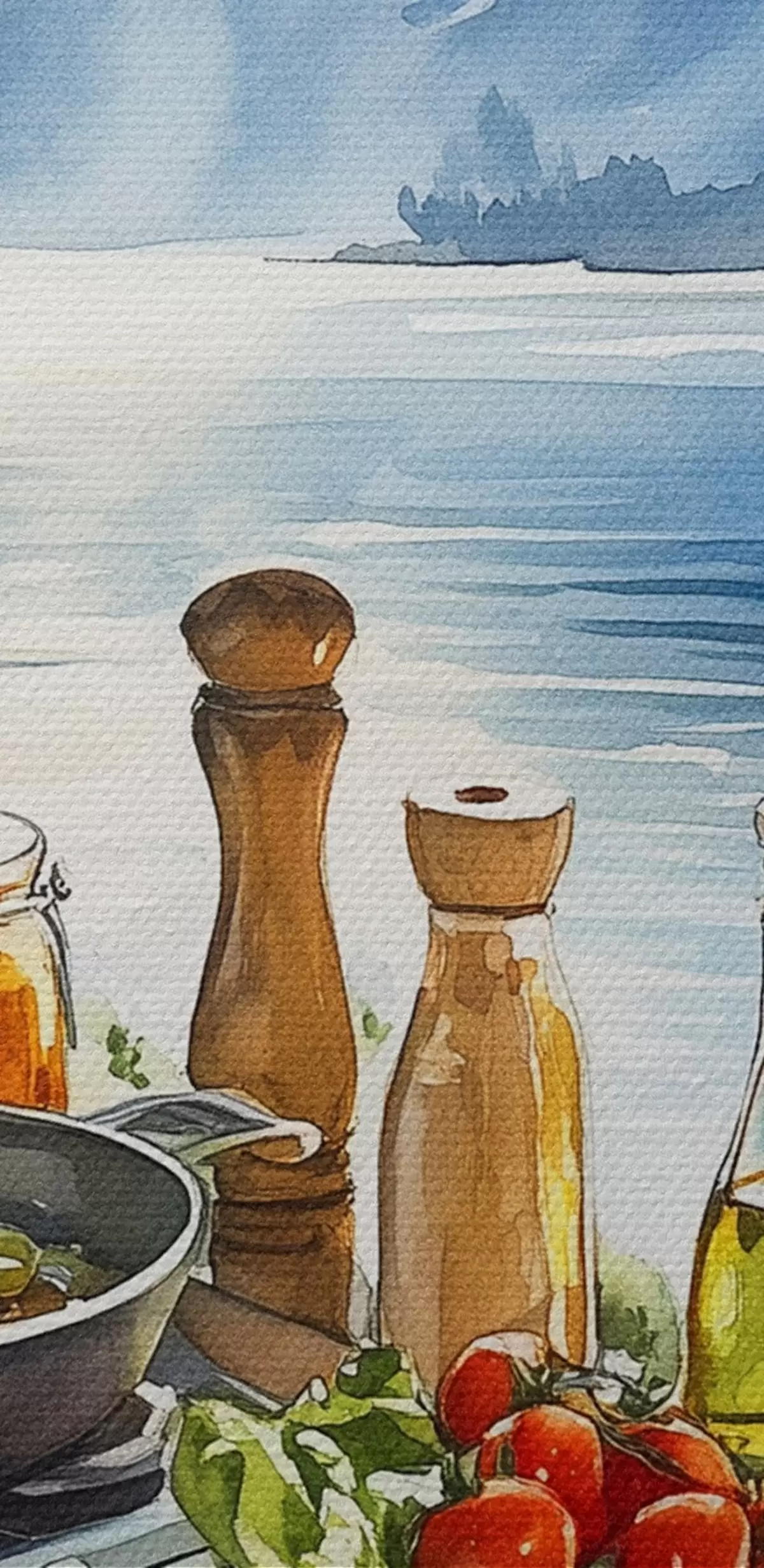 Tableaux rondes Belle matinée d'été, lac, style aquarelle, petit déjeuner, voyage r42433