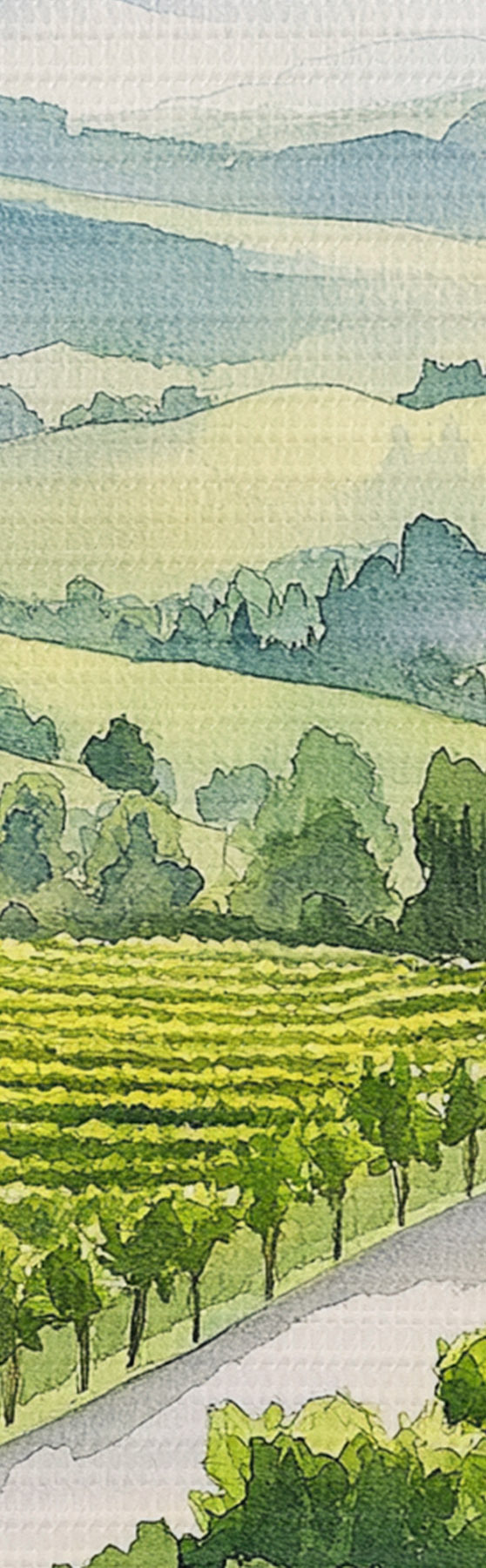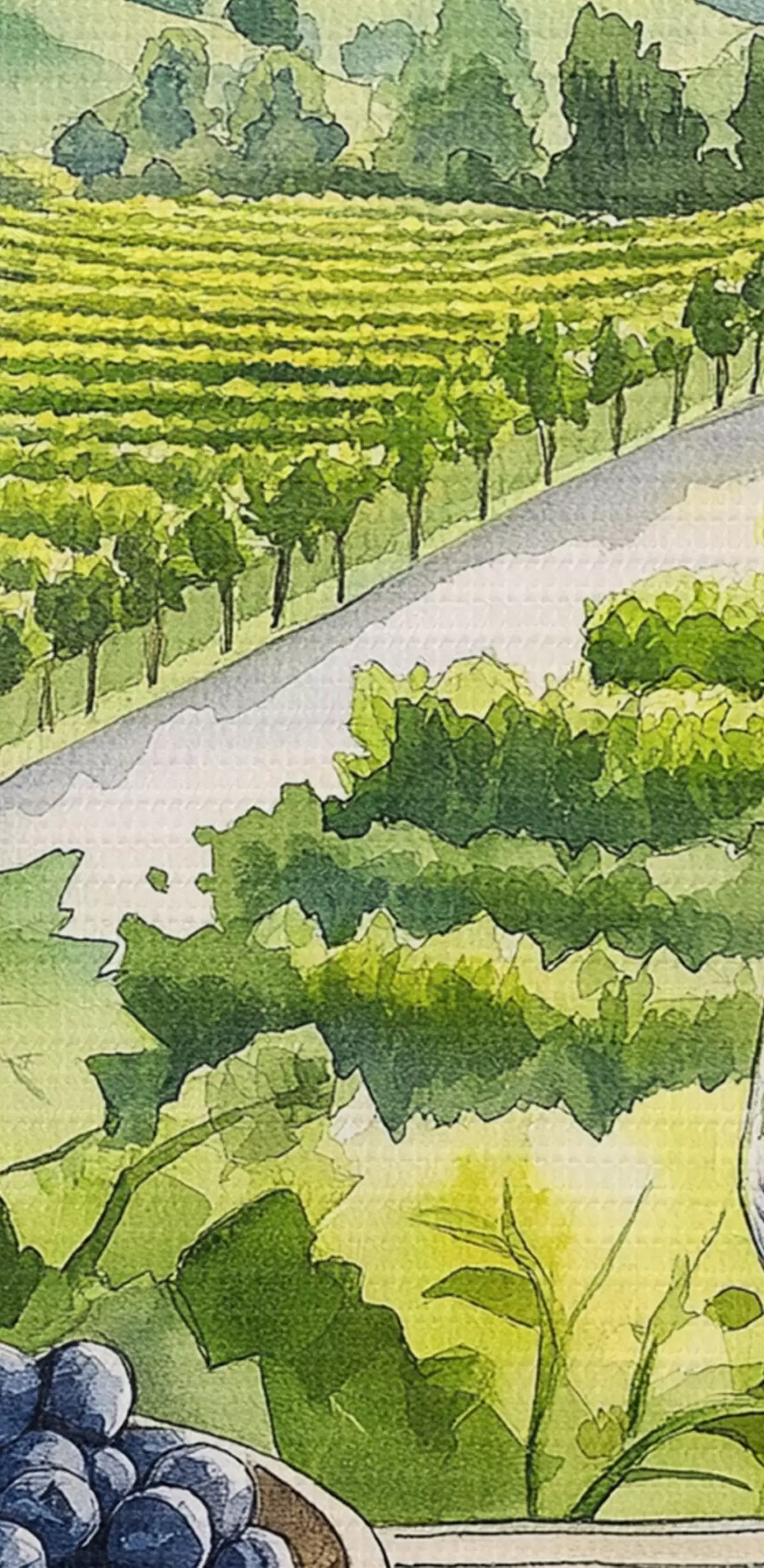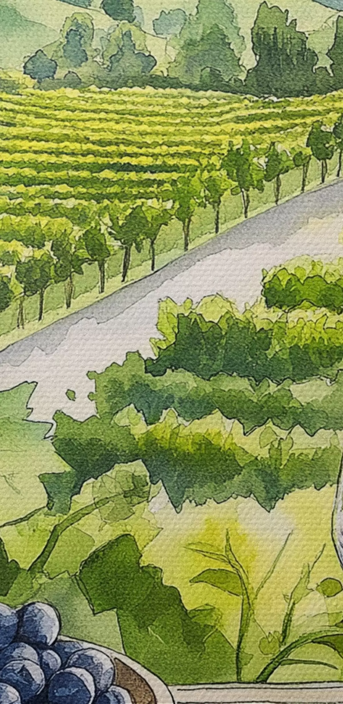 Tableaux rondes Jardins de pêche, paysages de style aquarelle, verres à vin r42444