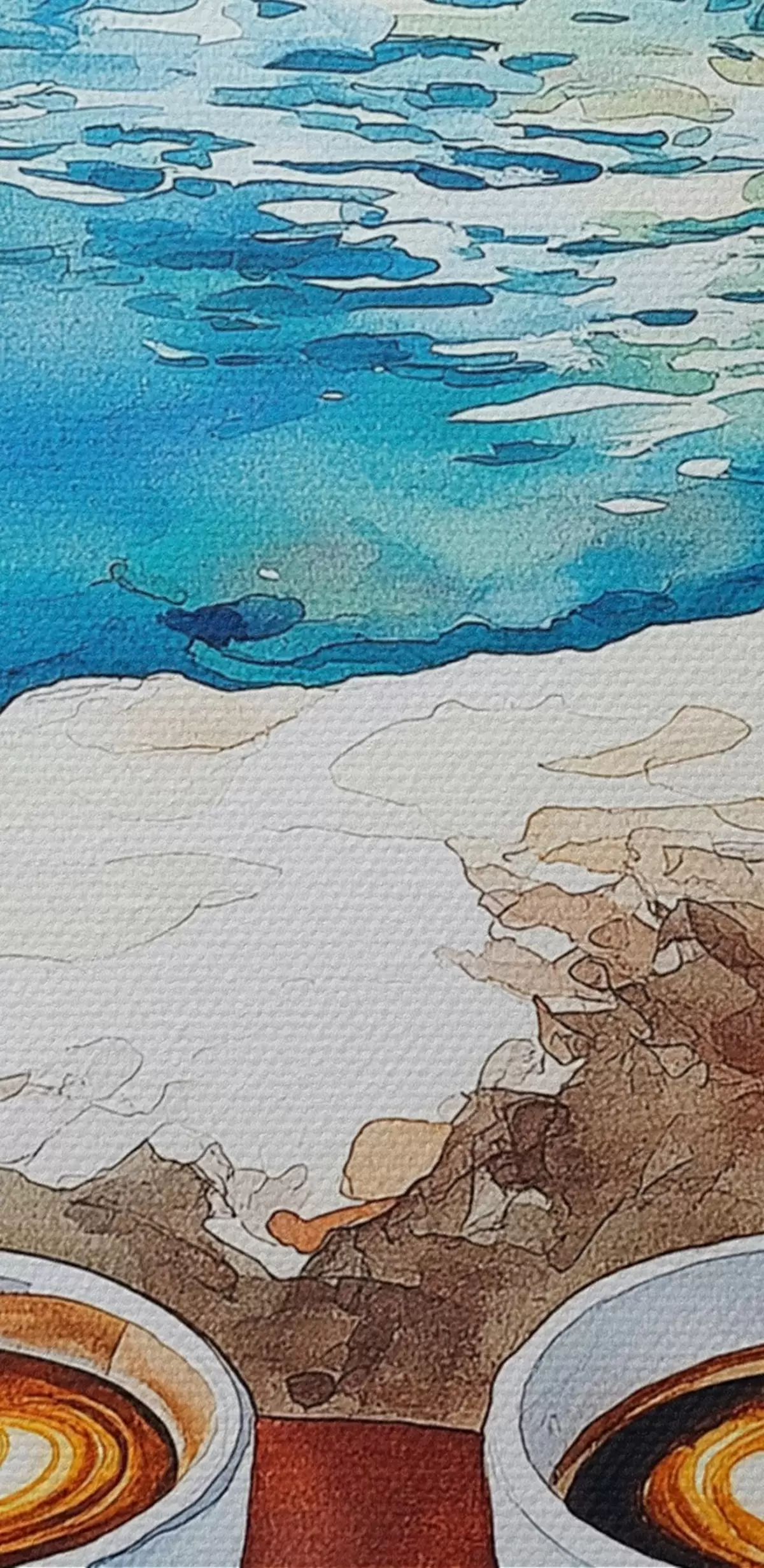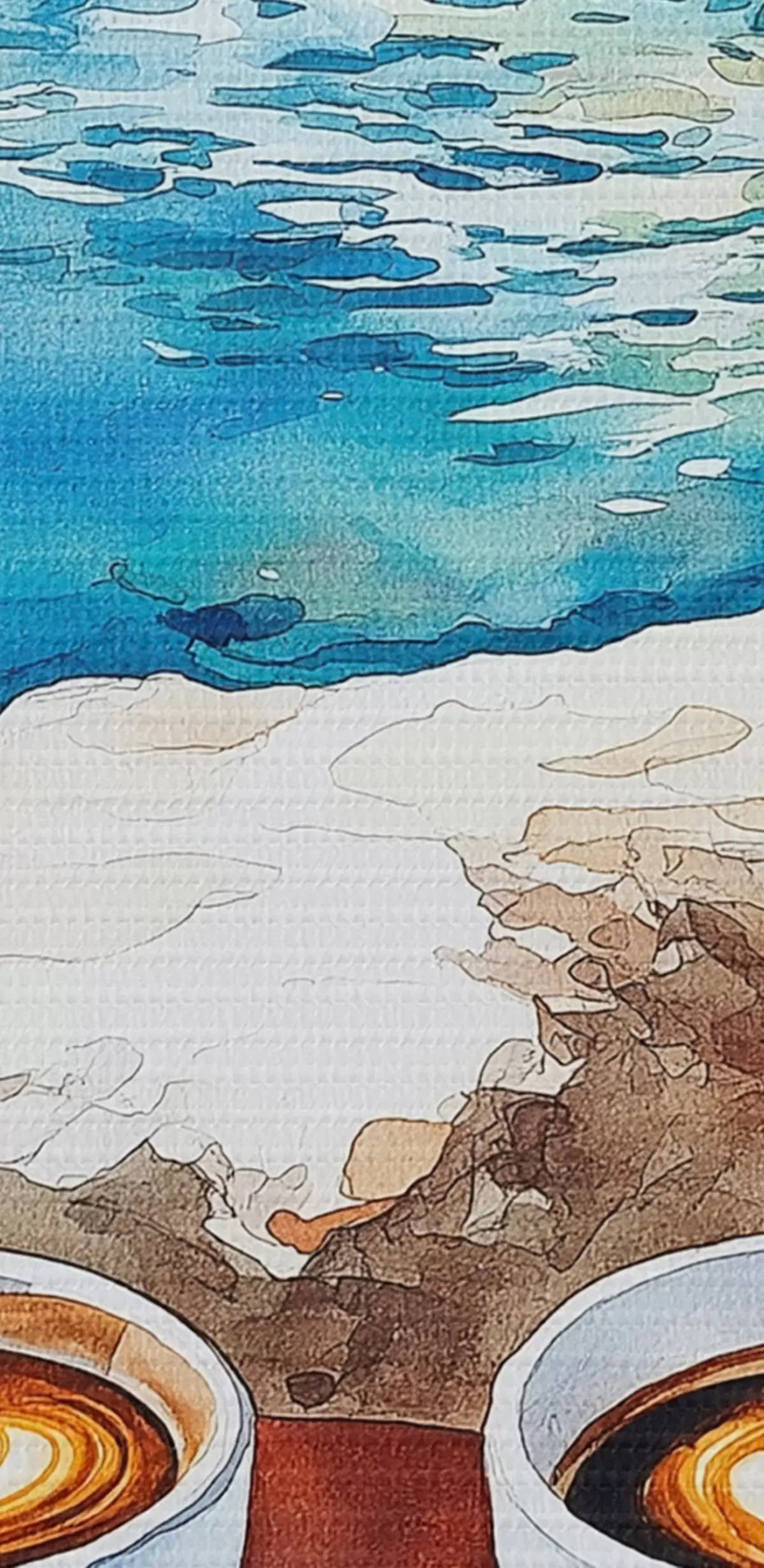 Tableaux rondes Aquarelle bord de mer avec tasses de café, été r42449