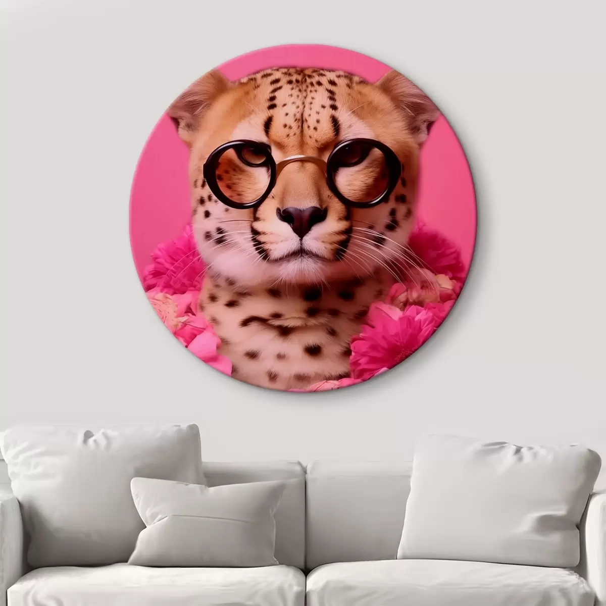 Tableaux rondes Guépard en lunettes avec guirlande de fleurs r42477