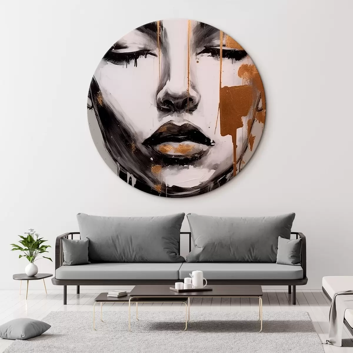 Tableaux rondes Portrait en noir et blanc avec des éléments abstraits Nr r42481
