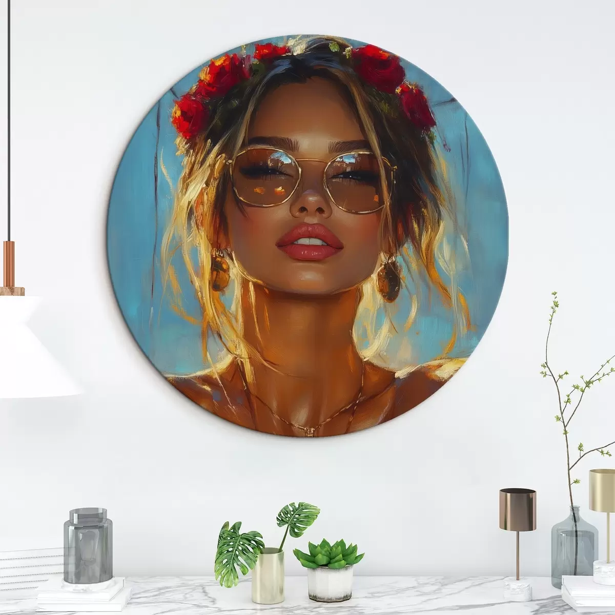 Tableaux rondes Portrait d'une jeune fille portant des lunettes de soleil Nr r42503